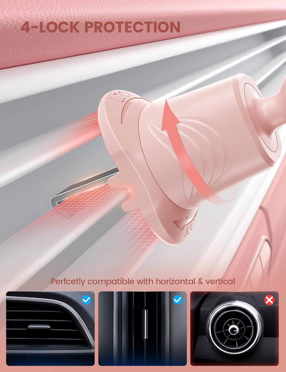 Lamicall 2025 Wider Clamp & Metal Hook Car Phone Holder Vent [Thick Cases Friendly] Phone Holders for Your Car Mount Automobile Hands Free Cradle Air Vent Pink
