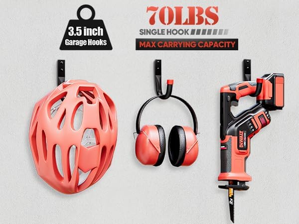 - Simple Design, Powerful Performance: Nacial garage hooks heavy duty combine simple design with ultimate durability, crafted from premium heavy-duty solid steel with rubber tip. These hooks support an impressive load capacity of up to 70 —twice that of standard hooks. Each hook features a 3-layer reinforced plate, shaped through over 20 precision steps and strengthened at high temperatures for 4 hours for superior load capacity. Nacial Simple Design—Great Hooks, Greater Performance