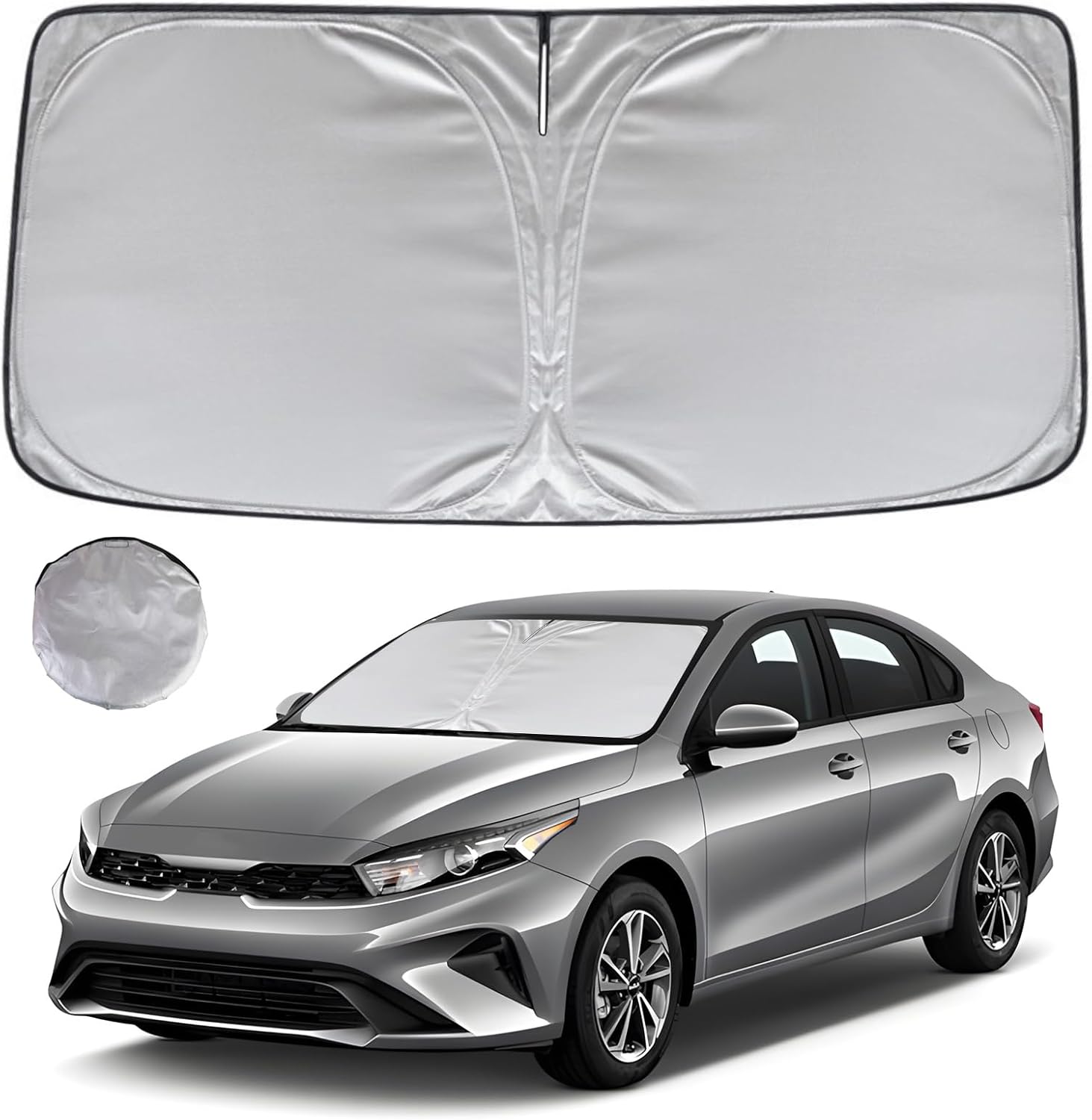 - KAYZT windshield sun shade is precise custom fit for 2019 2020 2021 2022 2023 2024 Kia Forte, Thoroughly covers every corner of the windshield, Tailored to accommodate rear view mirror, Ensuring a seamless and snug fit without obstruction, Must have car accessories for Kia Forte