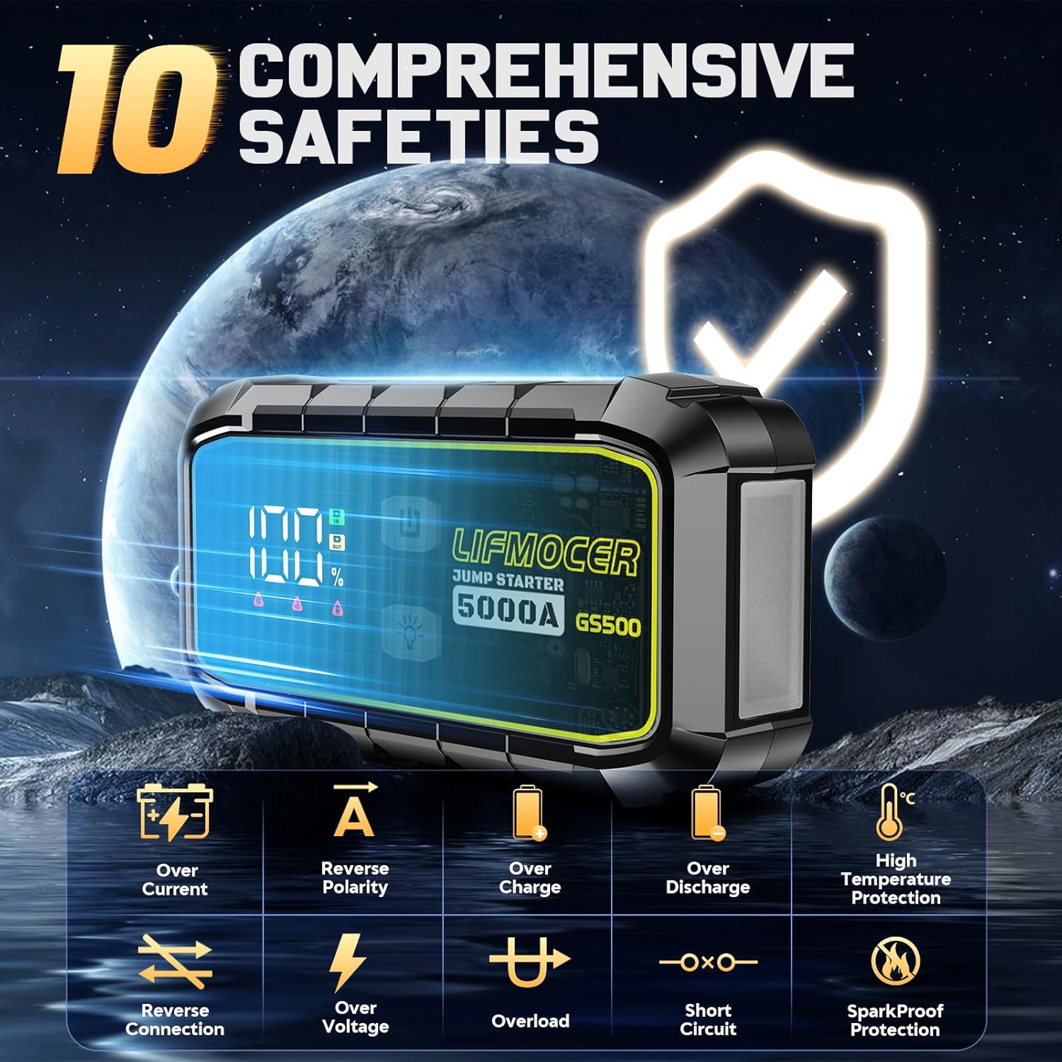 - ăIntelligent Secure Protection DesignăOur battery jump starter built-in 10 types of protection, frees your worries of misuse and sparks. it comes with excellent conductivity and heavy-duty jump cables. We wanted to ensure our users feel 100% safe using our product