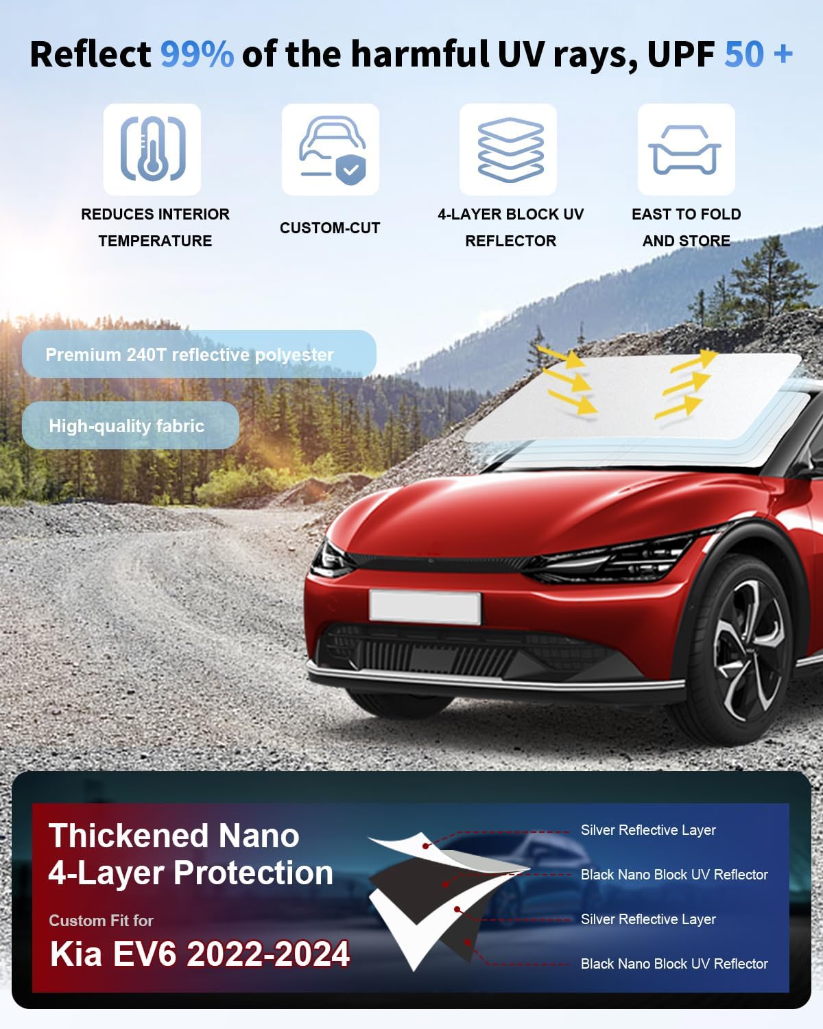 - [VEHICLE SPECIFIC] SLOGENTO Windshield Shade custom fit Fit for Kia EV6 2022 2023 2024 2025 Accessories,Full covered your windshield,No Gap,100% Perfect fit.