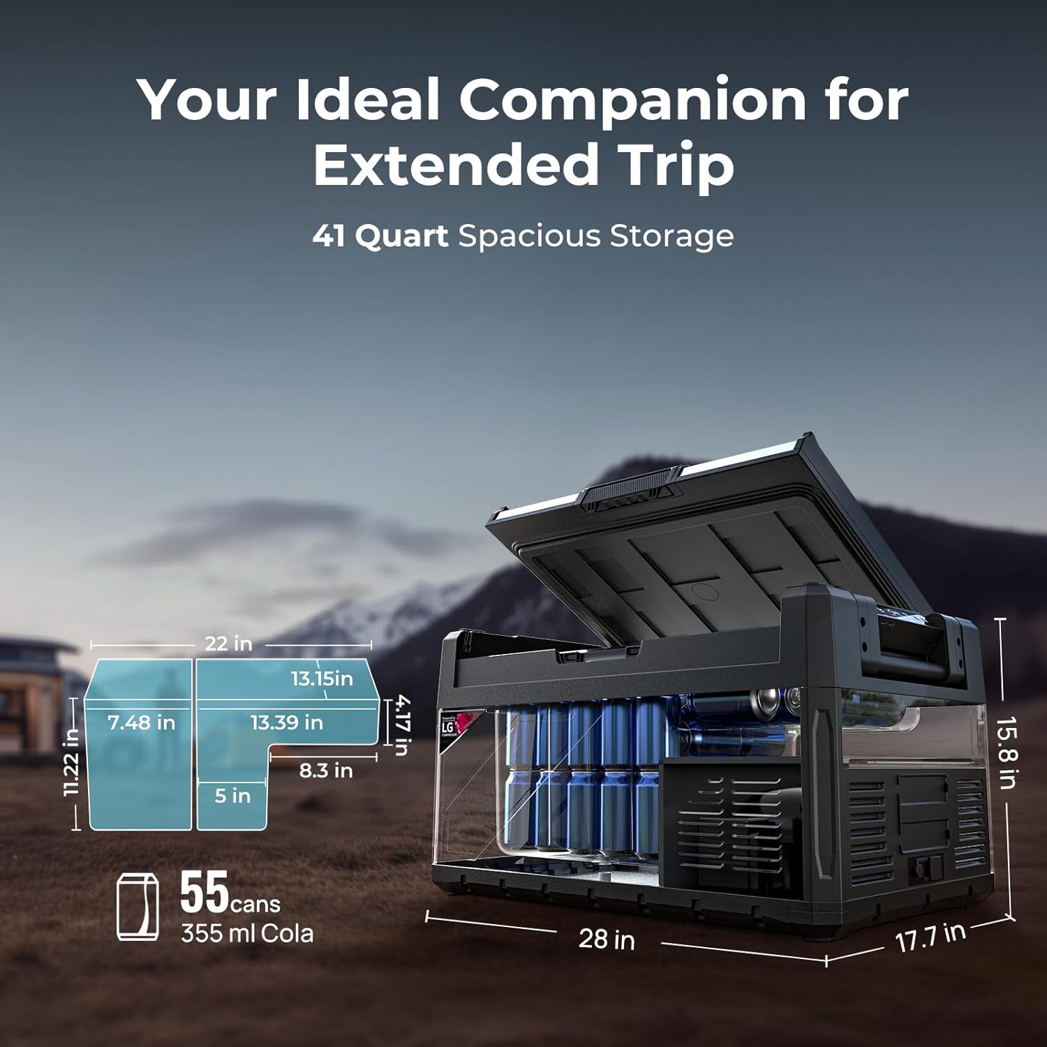 - Capable of Reaching -4℉ Even at 109℉ Ambient Temp: Using a 5.7cc compressor, the Rocky V2.0 41 quart portable refrigerator can cool down to -4℉ even in an ambient temp of 109℉, ensuring that frozen goods stays as fresh as possible even in hot environments and let you have a better outdoor experience