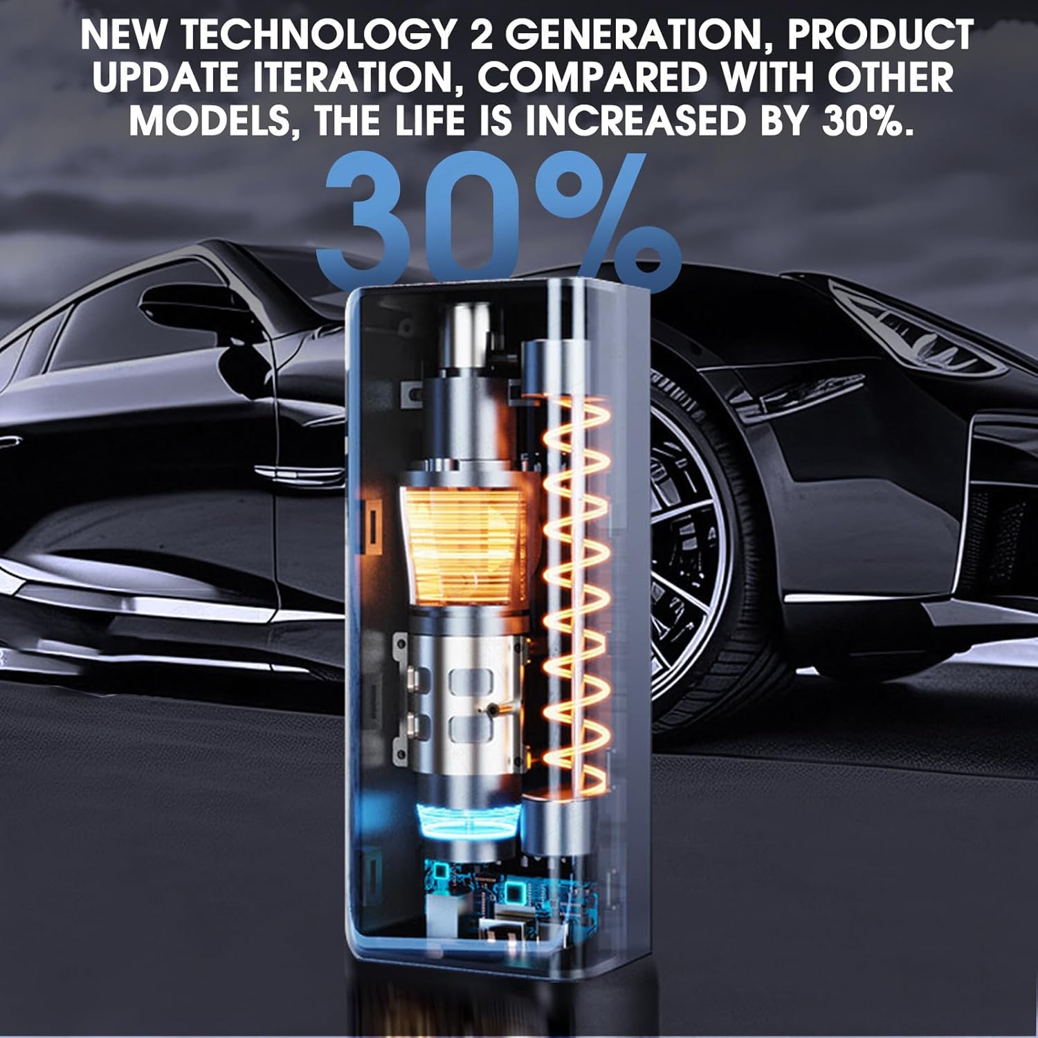 - 【3x Faster Inflation Speed】This powerful tire inflator portable air compressor reaches up to 150PSI, equipped with a high-performance chip and high-power motor, it takes only 1 minute to increase tire pressure from 30PSI to 36PSI, or approximately 5 minutes to fully inflate a car tire (0-36PSI), this air pump for car tires operates efficiently and rapidly