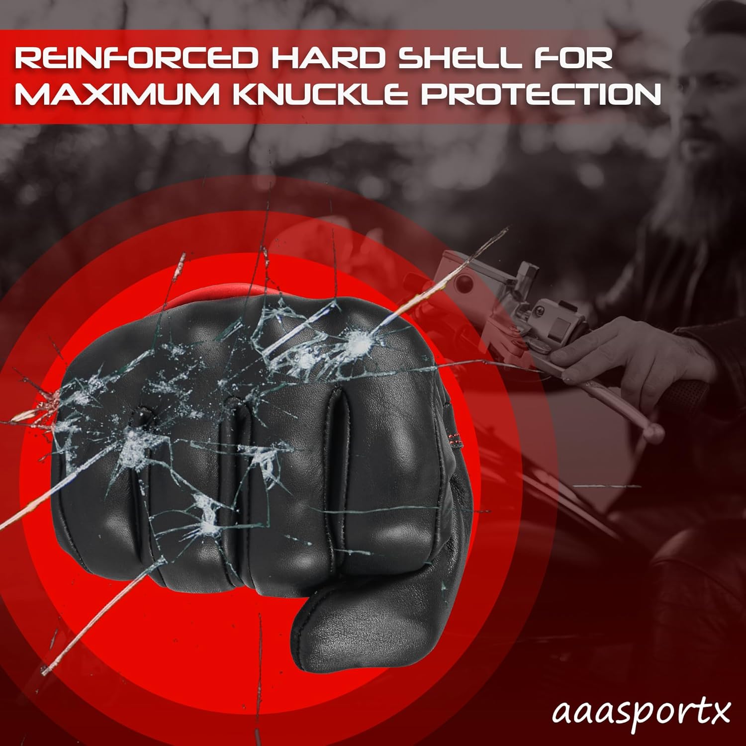 - ARMORED MOTORCYCLE GLOVES - aaasportx Motorcycle Riding Gloves men Knuckles are made of hard shell PVC which protects your hands in the event of a knock or crash.The Motorcycle Leather Gloves provide essential impact protection, safeguarding your hands during rides. Regarding protection and style, These Motorcycle Gloves Leather are a rider's best companion on the open road.