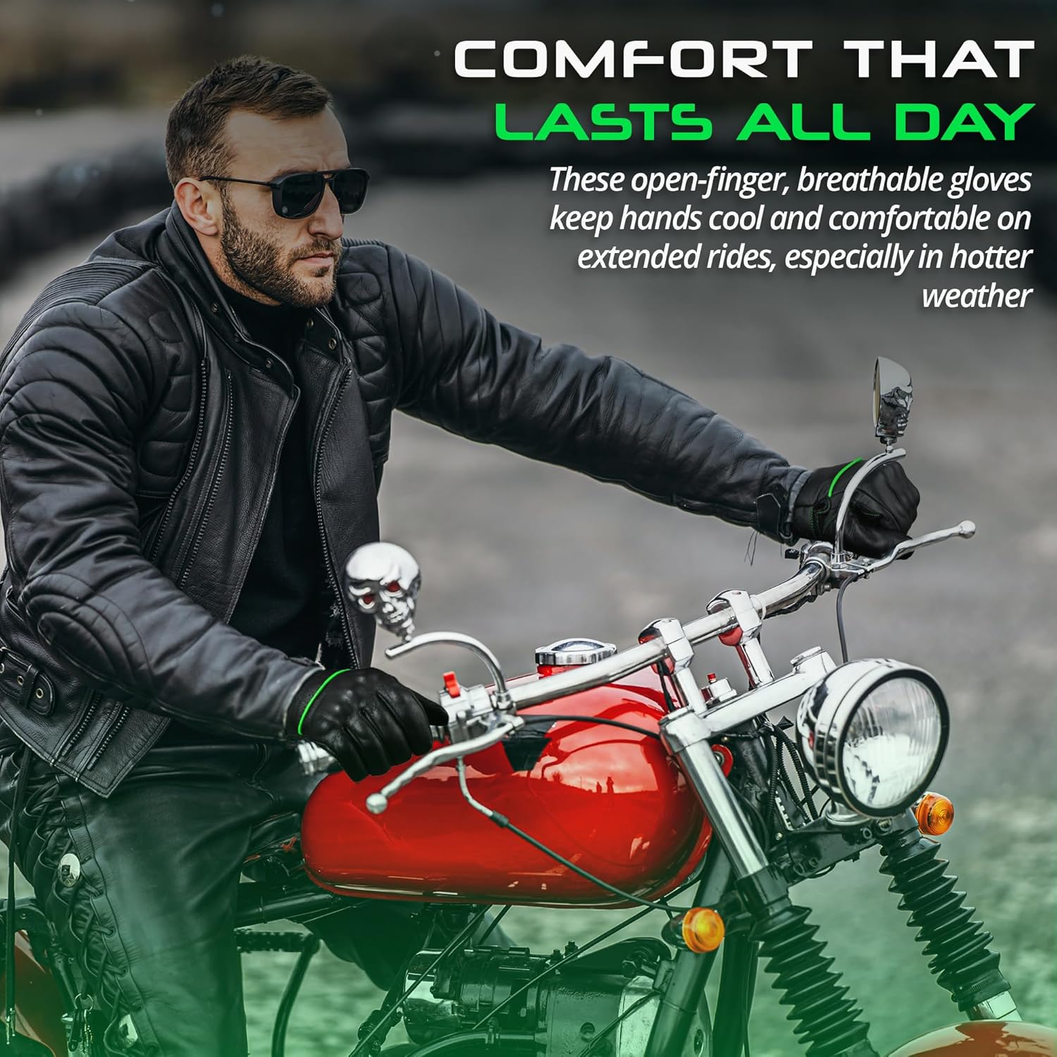 - LEATHER MOTORCYCLE GLOVES - aaasportx Best black green Motorcycle Gloves are made of premium quality Genuine Leather. Our Lightweight Motorcycle Gloves ensures durability through a variety of situations. aaasportx Motorcycle Gloves for Men offer a high-quality, stylish, and durable finish that excludes sophistication and toughness on the road.