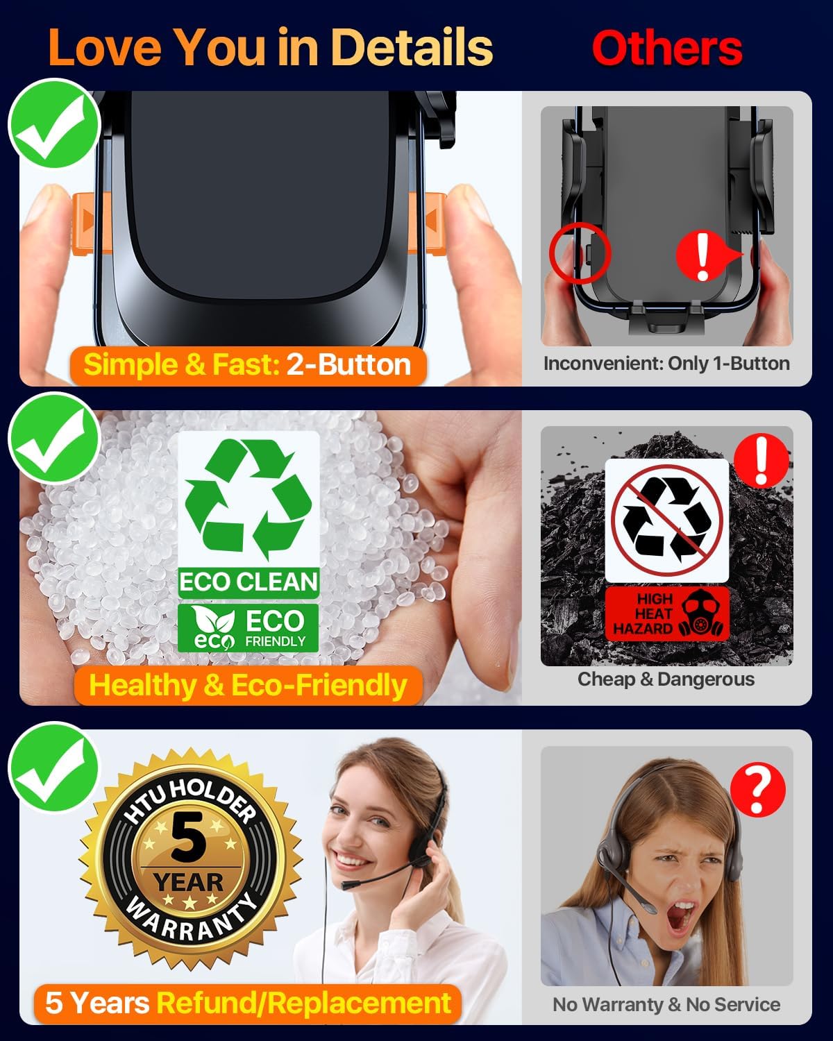 - 【𝗨𝗹𝘁𝗶𝗺𝗮𝘁𝗲 𝗨𝗽𝗴𝗿𝗮𝗱𝗲𝗱- 𝟯 𝗗𝗲𝗳𝗲𝗻𝘀𝗲 𝗟𝗮𝘆𝗲𝗿𝘀】① Dual-Layer Shock Absorption - 89% vibration reduction (ASTM tested) ② Steel-Reinforced Clip Core eliminates wobble ③ Full-contact silicone pads prevent scratches. *Lab result: 47% wider viewing angles & 5,000+ pothole impacts survival*