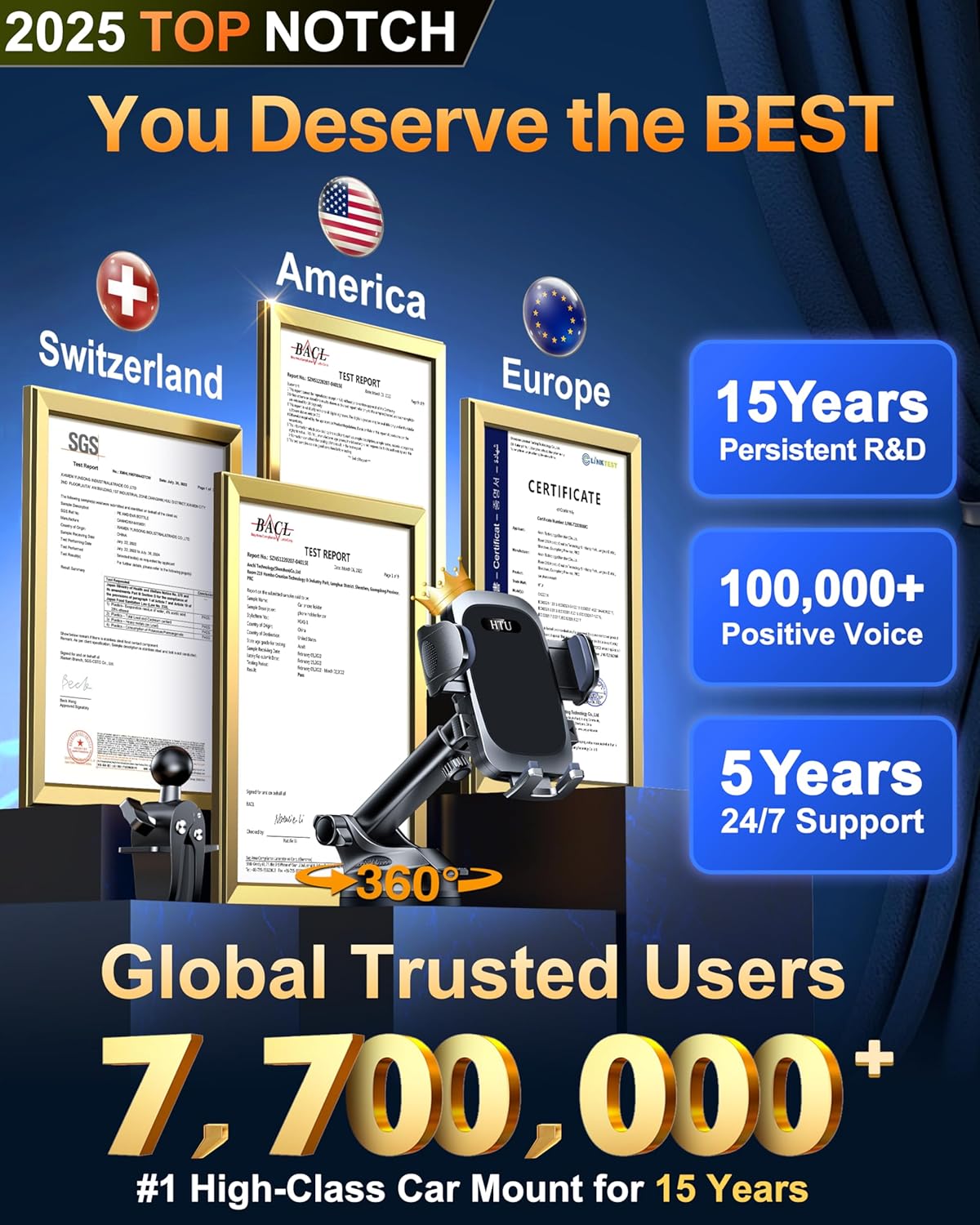 - 【𝗣𝗿𝗼𝘃𝗲𝗻 𝟭𝟬𝟬𝗟𝗕 𝗜𝗻𝗱𝘂𝘀𝘁𝗿𝗶𝗮𝗹 𝗦𝘂𝗰𝘁𝗶𝗼𝗻 - 𝗘𝘅𝘁𝗿𝗲𝗺𝗲-𝗥𝗼𝗮𝗱 𝗖𝗲𝗿𝘁𝗶𝗳𝗶𝗲𝗱】Engineered with 100LB+ force (60X stronger than basic holders) & 2025 Nano Melt-Proof adhesive. Survived 16,800 lab tests & 100,000km Death Valley-to-Alaska routes. Certified CP65/REACH/RoHS (No.LINK-T2211264R). *US Patent ATC210427-14141E*