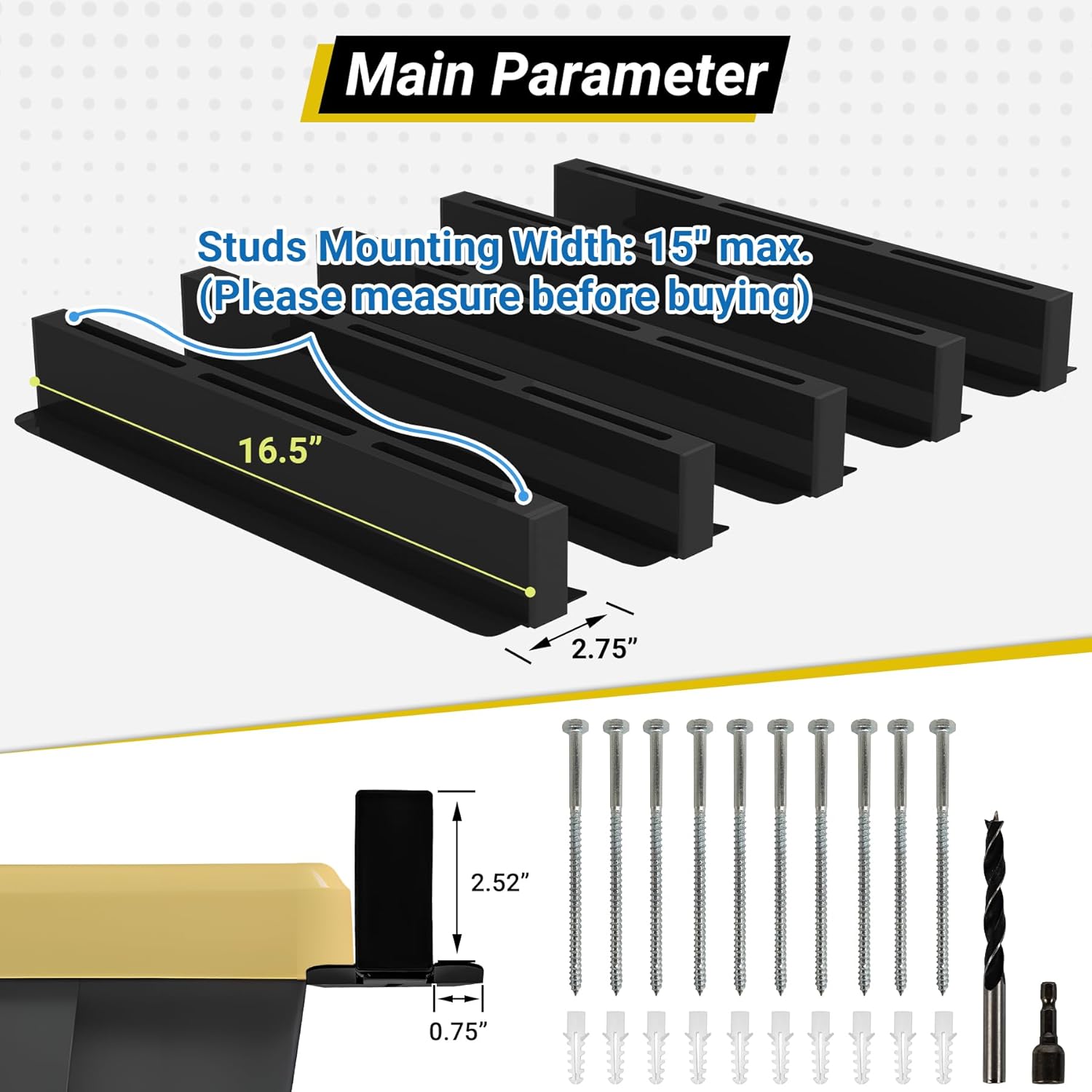 - Expandable T-shaped Structure: Our ceiling storage racks have a distinct T-shaped design. When mounted horizontally, they can hold more boxes. You can purchase extra sets to expand your storage. (Dimensions: 16.6”L x 2.75”W x 2.8”H)