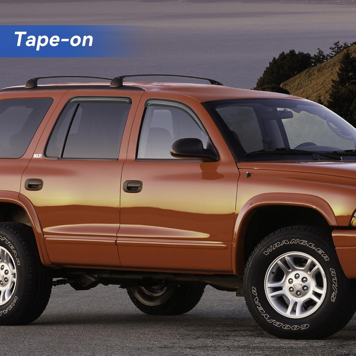 - ăPerfect FităYQAUTEC 4Pcs Out-Channel/Outside Adhensive Window Visors Rain Guards Shield fit for 1998 1999 2000 2001 2002 2003 Dodge Durango, Side Window Vent Wind Deflectors Visors Shades for 98 99 00 01 02 03 Dodge Durango.