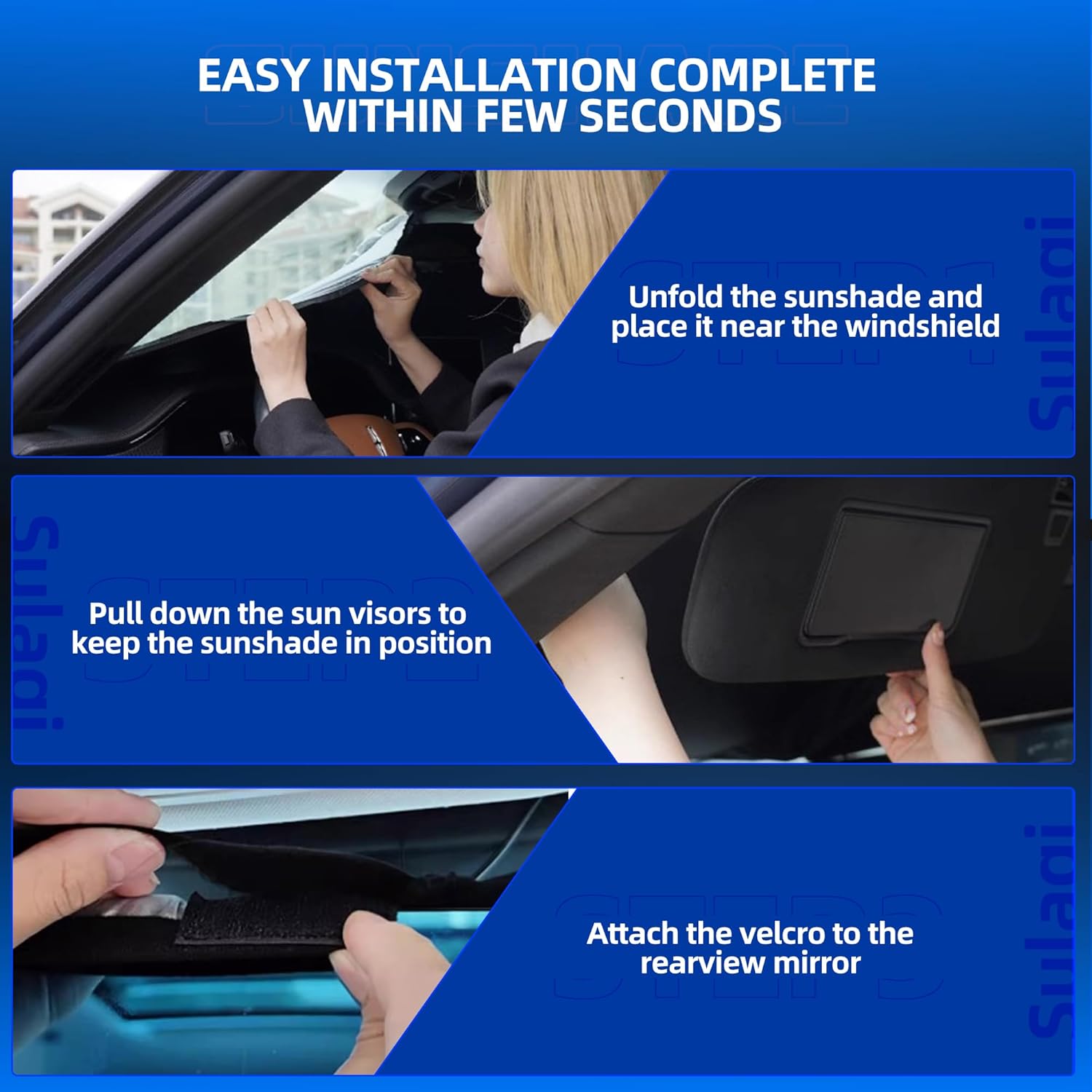 - ๐๐ซ๐๐ฆ๐ข๐ฎ๐ฆ ๐๐๐๐ ๐๐๐๐ฅ๐๐๐ญ๐ข๐ฏ๐ ๐ ๐๐๐ซ๐ข๐: Sulagi car front windshield sun shade is made of high quality 249T polyester fabric materials, durable and eco-friendly, tear-resistant and wear-resistant. Providing long-term use and is less prone to damage for your windshield