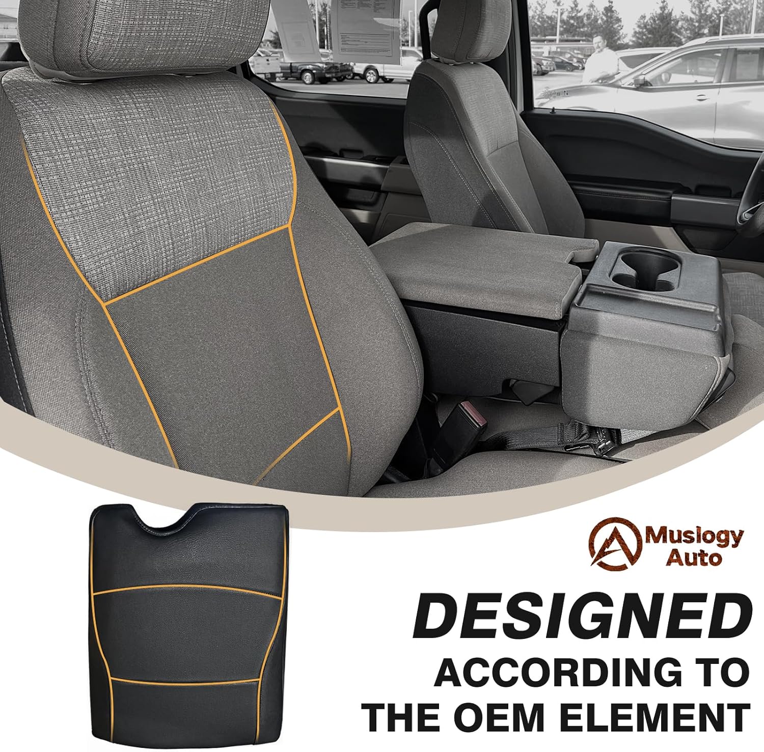 Muslogy Center Console Armrest Cover Compatible with Ford F-150 F150 2015-2024 2025 Comfort Armrest Pad Arm Rest Cushion Vegan Leather Protector 1-Inch Extra Thick(Jump Seat ONLY)