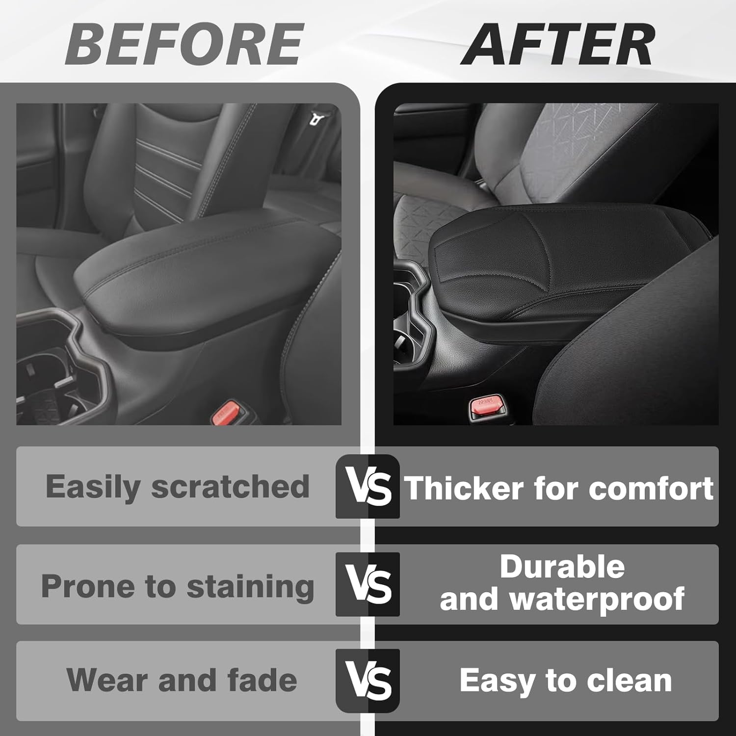 - Unique Design: Designed according to the OEM texture to make it match your interior perfectly and even better. The armrest cover is crafted with high-quality Vegan Leather, which is skin-friendly, breathable and soft.