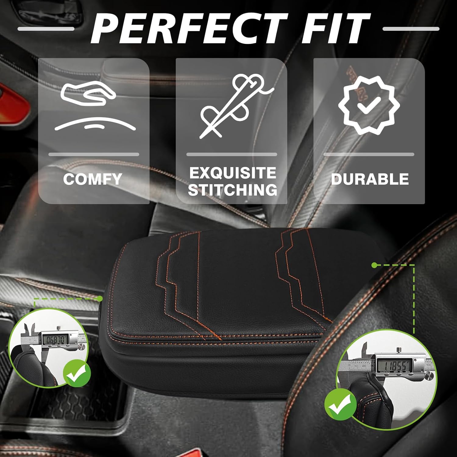 Muslogy for Frontier Center Console Pad Armrest Box Cover Vegan Leather Soft Accessories Armrest Lid Protector Compatible with Nissan Frontier 2022-2024 2025(Extra Thick, V2 Orange Stitching)