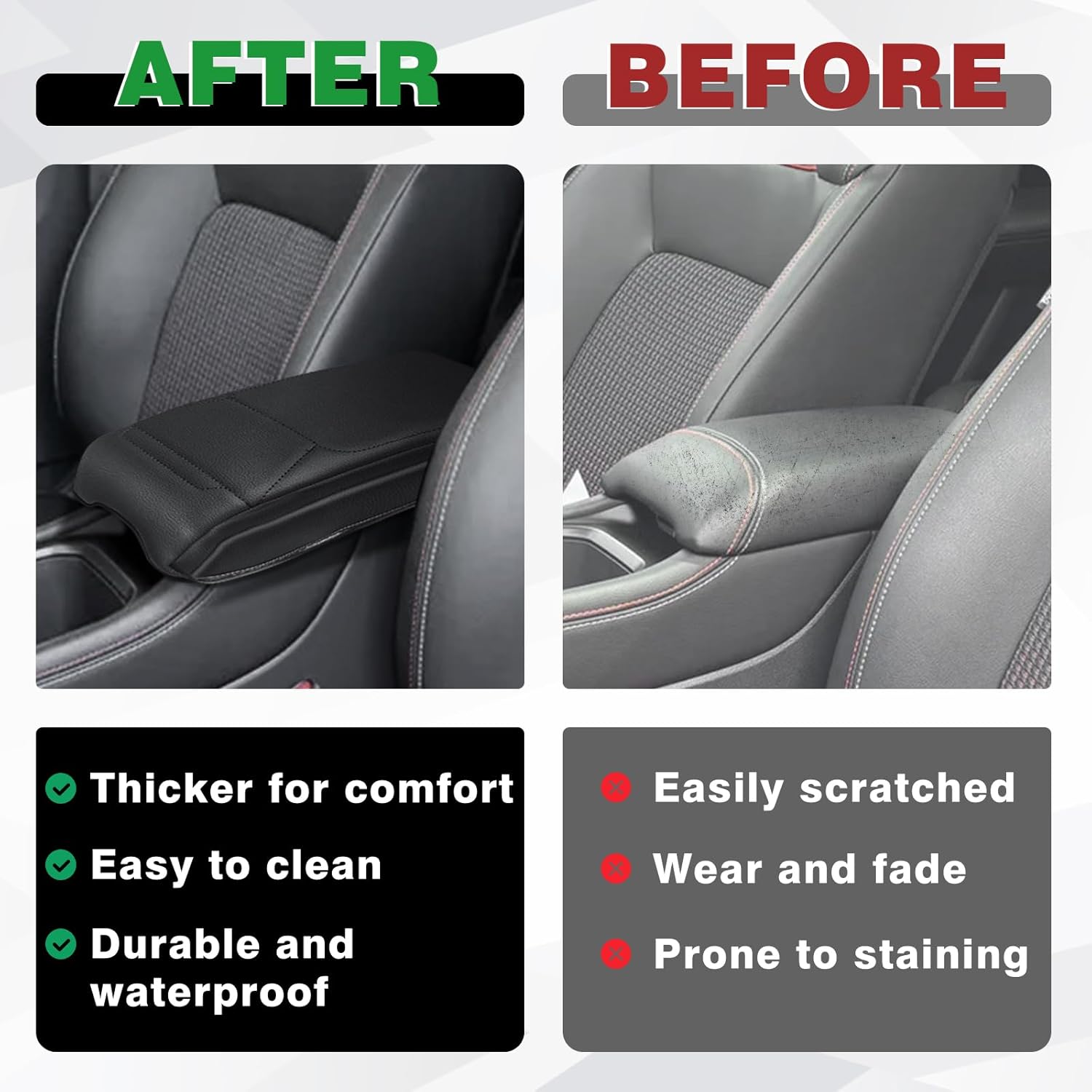 - Function: Not only make your arms and elbows feel comfortable while a long time driving, but also provides comprehensive protection for your center console to prevent pet paws, dirt, and sticky fingers.