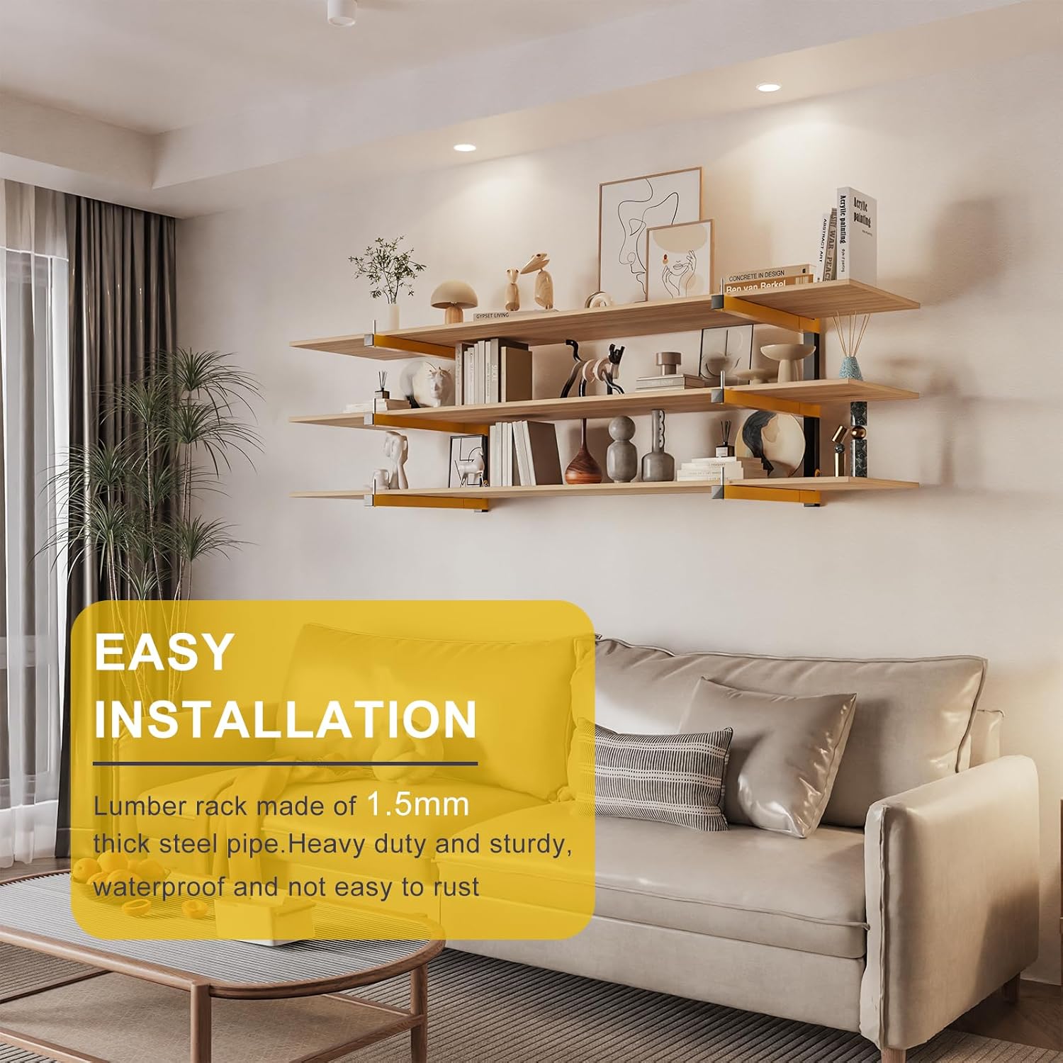 - 6-LAYER WALL-MOUNTED WOOD RACK: Heavy Duty Wood Storage Shelves for organizing the garage is welded with industrial precision and equipped with drywall anchors and high-strength screw kits. The wooden storage rack orange arm is 16 inches long. Suitable for various walls, such as concrete walls, wooden walls, red brick walls, etc.