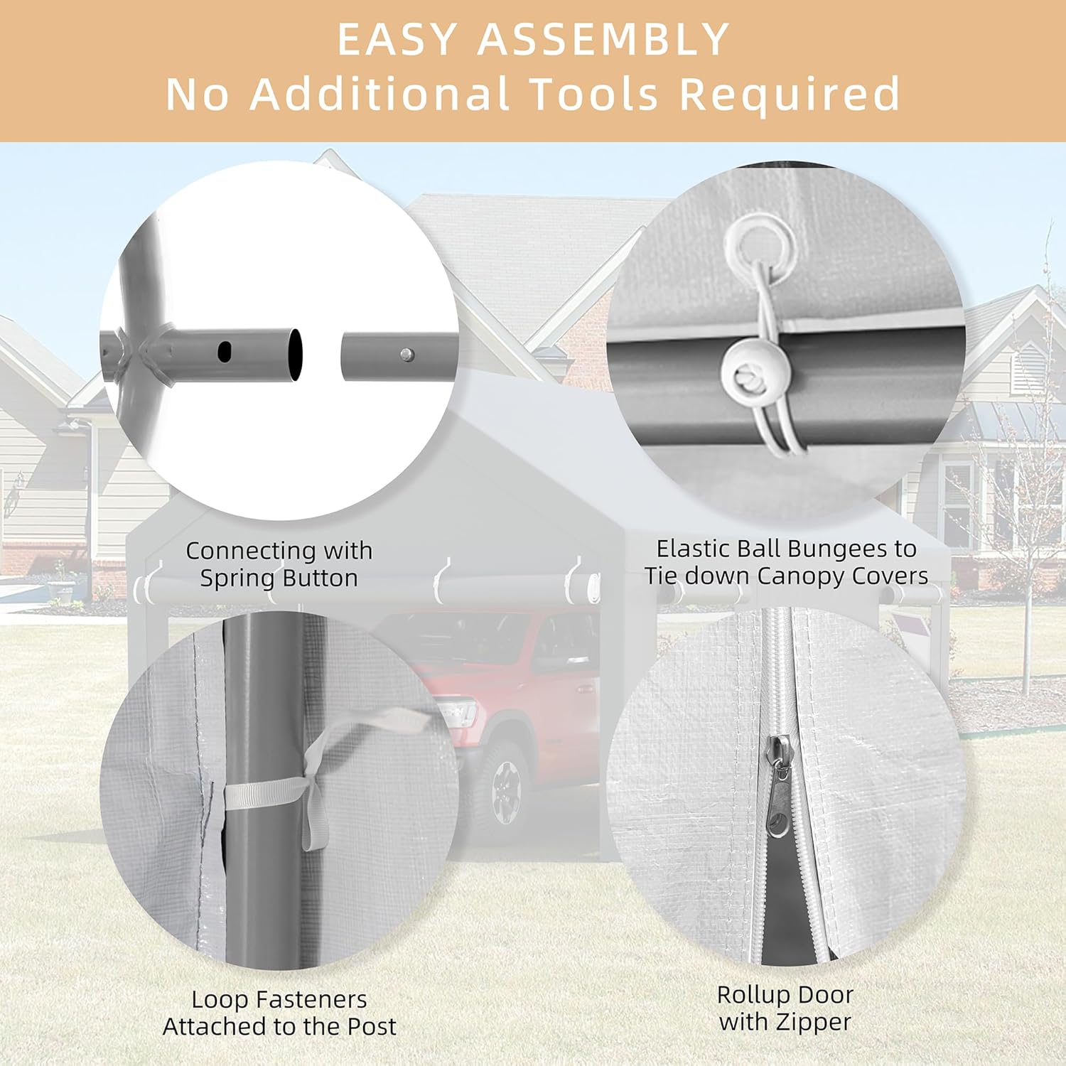- 【Removable Sidewall Windows and Doors】This carport comes with 2 removable sidewalls, 2 front and rear facing doors, and 4 roll-up ventilation windows for air circulation. You can roll the doors up or down as needed, or remove all the sidewalls and doors and leave only the canopy cover for outdoor activities.