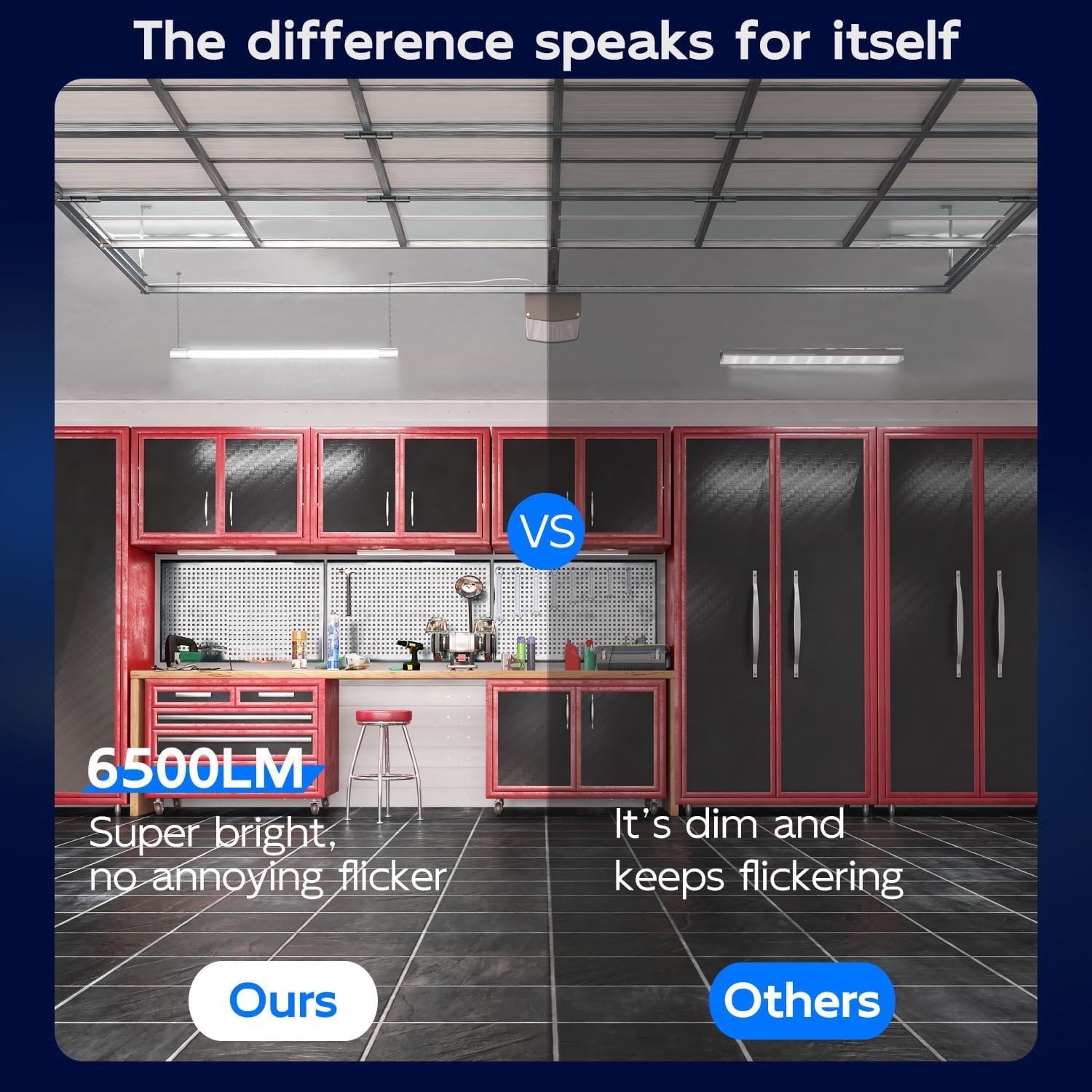 • āœ… Super Bright - 4FT led shop lights feature 6500 lumens brightness at 5000K Daylight White by using only 60W. That is a staggering LED Efficiency of 108 lm/w! Excellent replacement of conventional fluorescent fixture. Energy Savings of up to 75%.