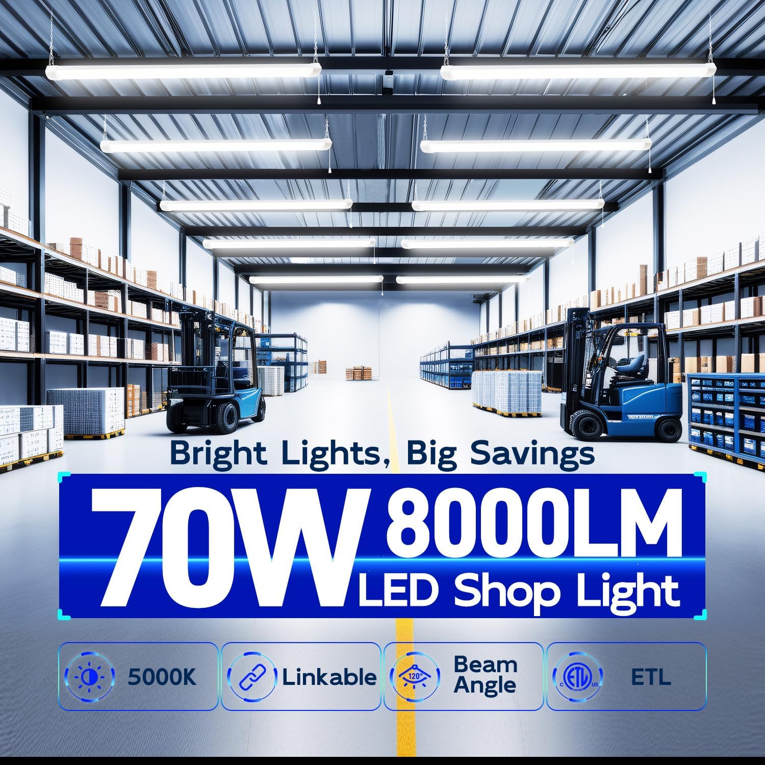 - ā High Quality - ETL certified for better quality, safety and reliability. Turns on instantaneously, no more waiting. This long-lasting LED shop light provides up to 50,000 hours of light before any maintenance is required.