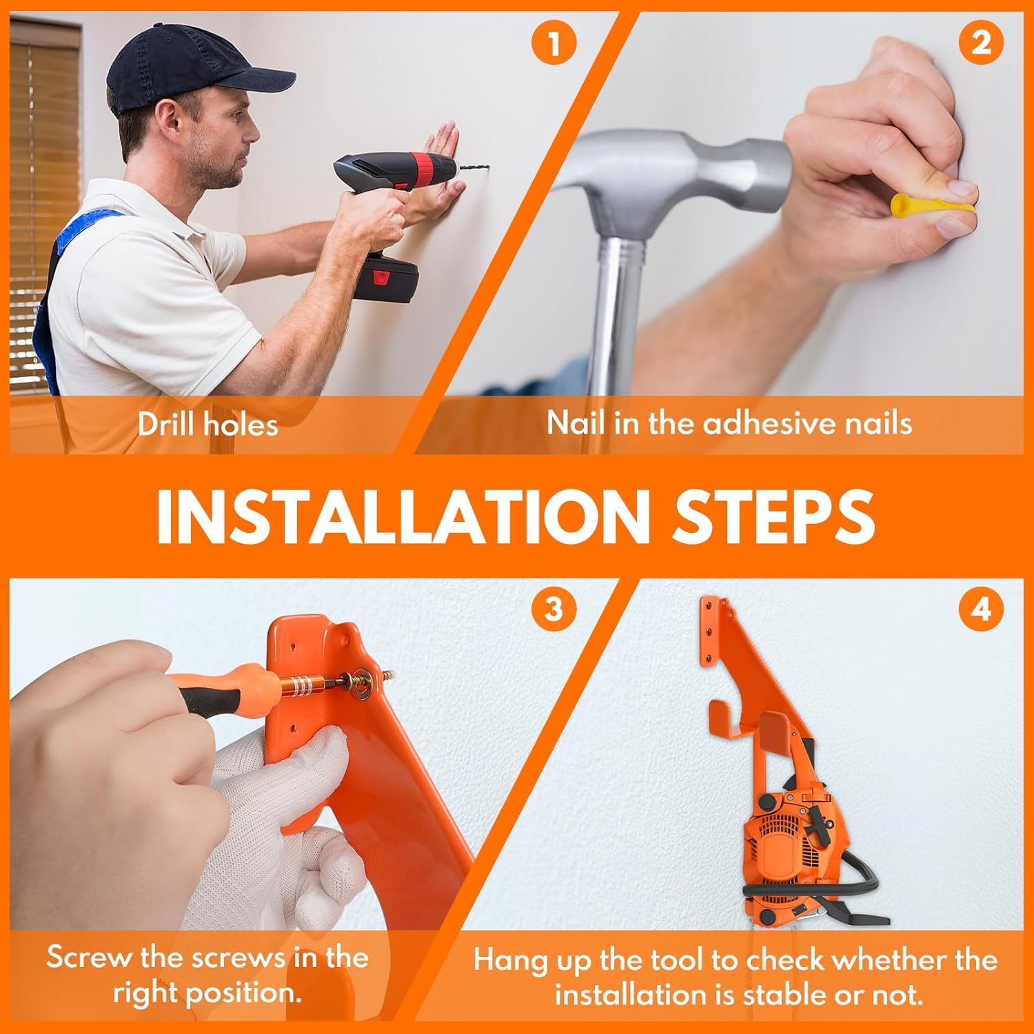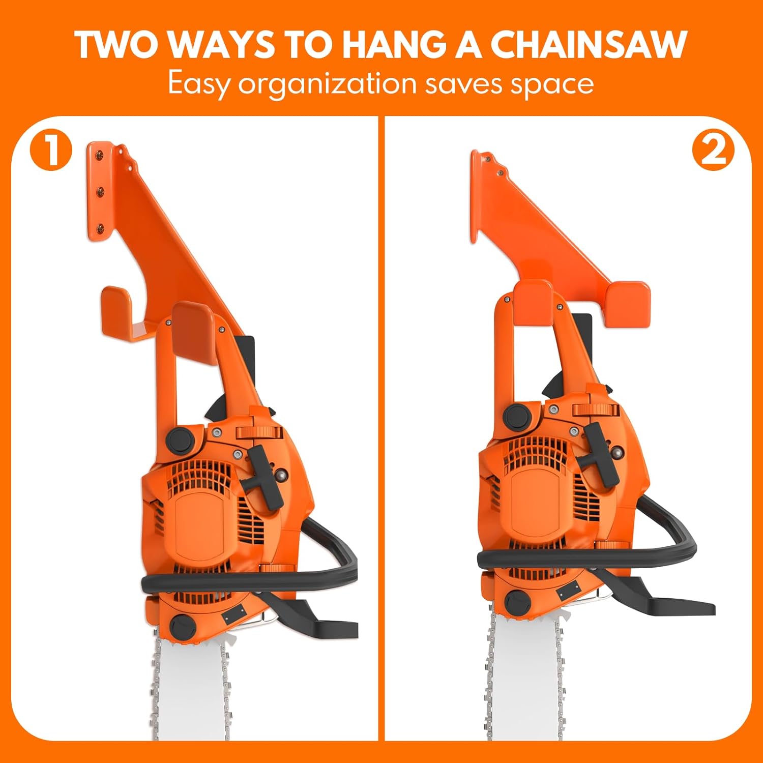 - Our tool wall mount is built to last, providing a sturdy and reliable storage option for your chainsaw and other power tools. Don't settle for flimsy and unreliable holders, choose our hanging rack for a durable and long-lasting solution.