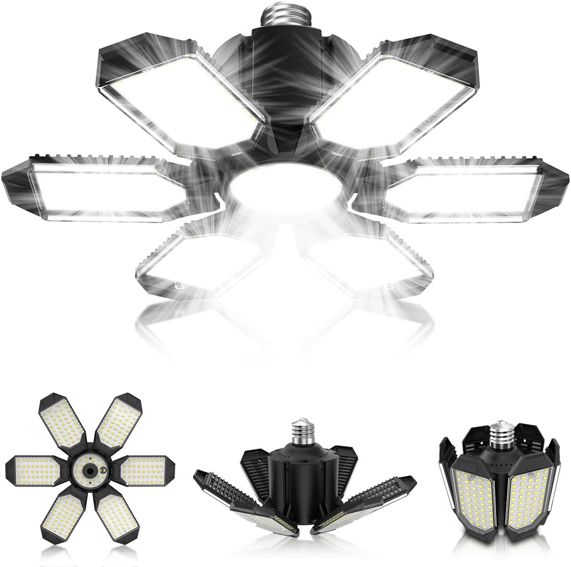 - 【Deformable Garage Light Panels】The six deformable panels are a game changer. They provide versatility in adjusting the light direction according to my needs. This feature is particularly useful when working in different areas of the garage, as you can position the panels to focus on specific spots without any dark shadows. Each panel is easy to adjust, making it simple to redirect light wherever you need it most.