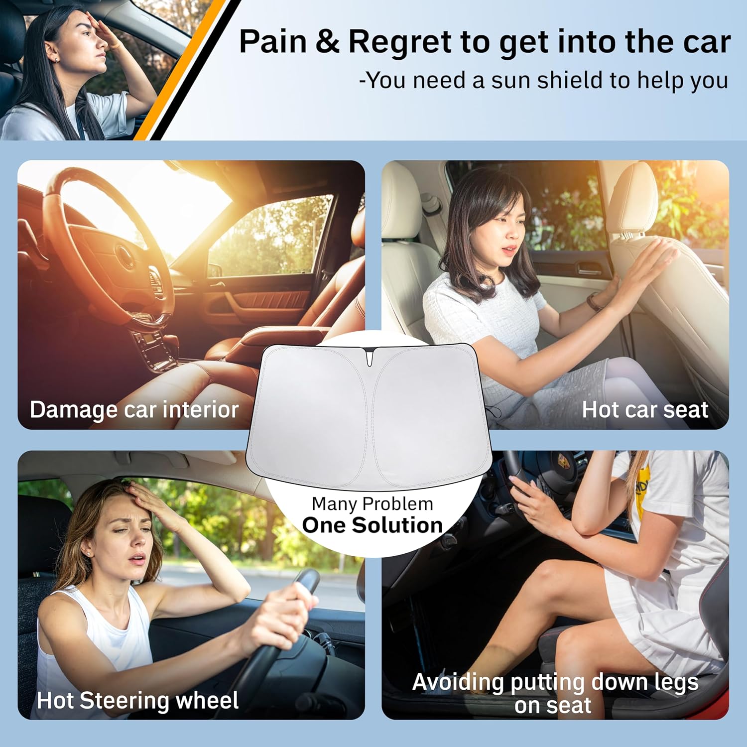 - Convenient Installation and Storage – Pops open for effortless setup and folds down quickly for compact storage. Comes with a travel-friendly storage pouch that fits easily into your glove compartment, door pocket, or center console. Lightweight and easy to handle, this sunshade is perfect for quick deployment whether you’re parked at work, at home, or on the go.