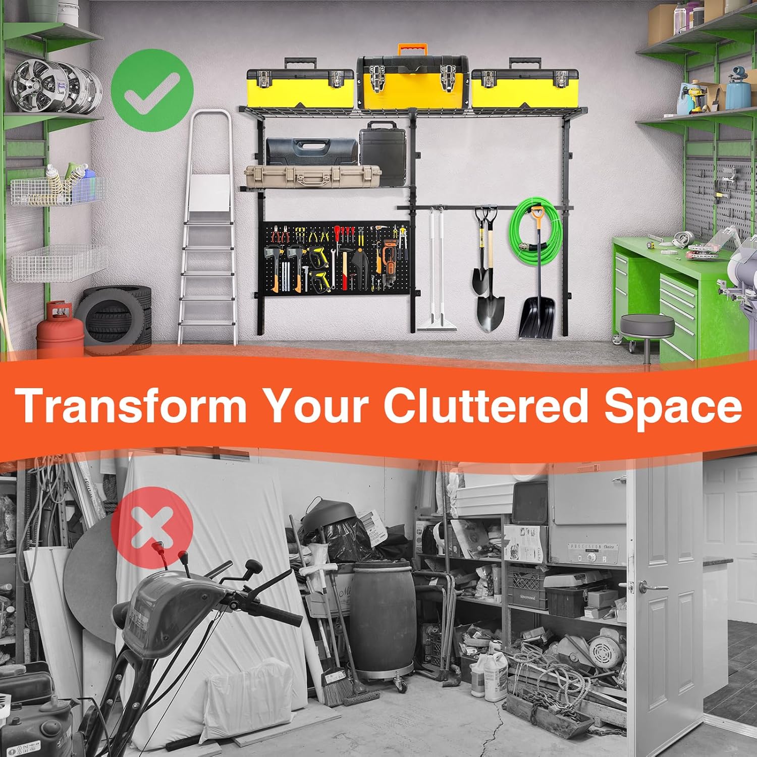 - ๐๐ฉ๐๐๐-๐๐๐ฏ๐ข๐ง๐ ๐๐๐ฌ๐ข๐ ๐ง:Optimize vertical wall space to clear floor areasโideal for small garages, apartments, or sheds, fitting seamlessly into your storage area,whether in your garage, shed, or garden area.