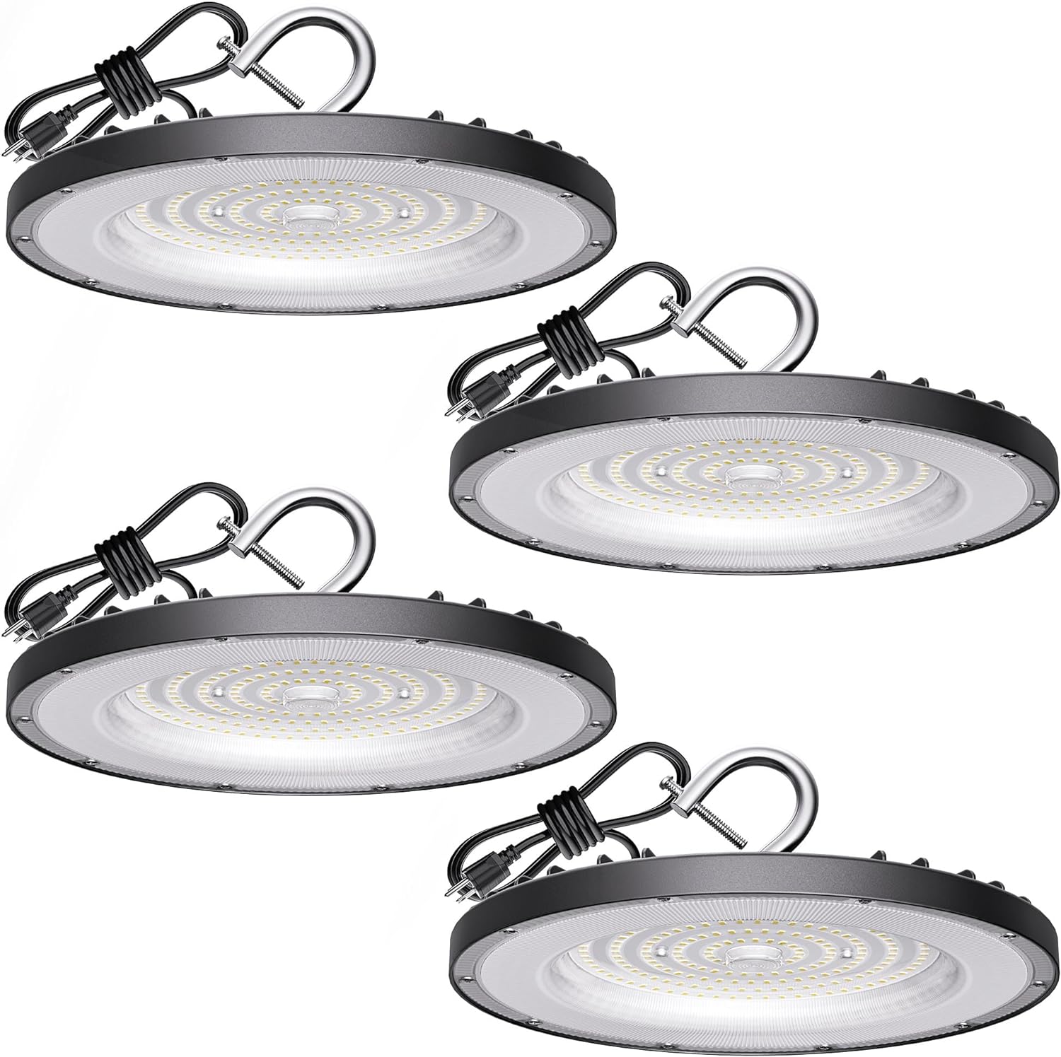 Led High Bay Light 100W, 14000lm 5000K UFO Bay Lighting with US Plug 5' Cable, 120V, IP65 Waterproof Commercial Lights Fixture for Workshop Factory Barn Garage, 4 Pack