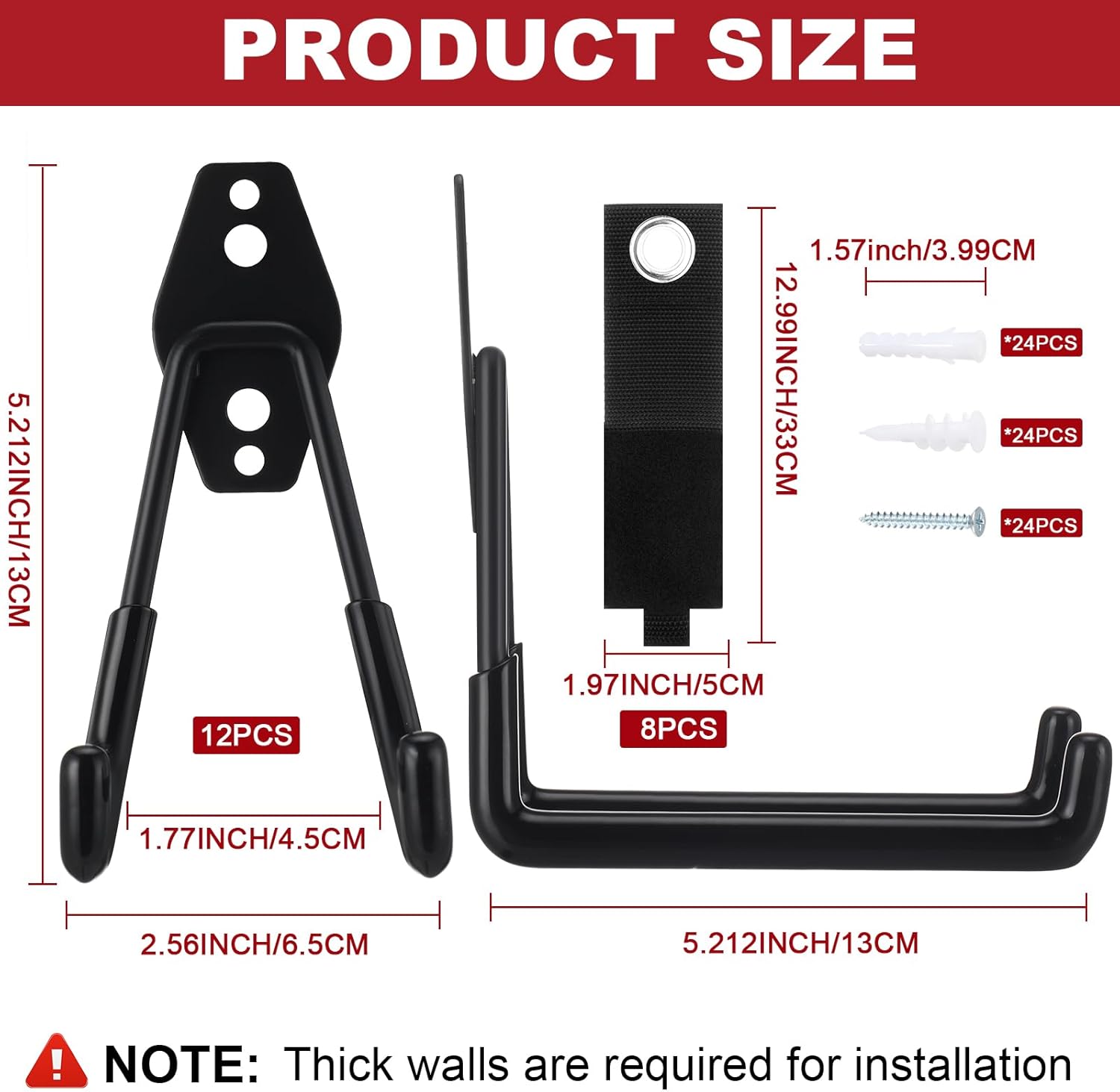 - Sufficient Quantity: our package includes 12 utility steel garage storage hooks and 8 extension cord organizer straps, providing all-around organization for your garage; Sufficient quantity can meet your daily use and replacement demands