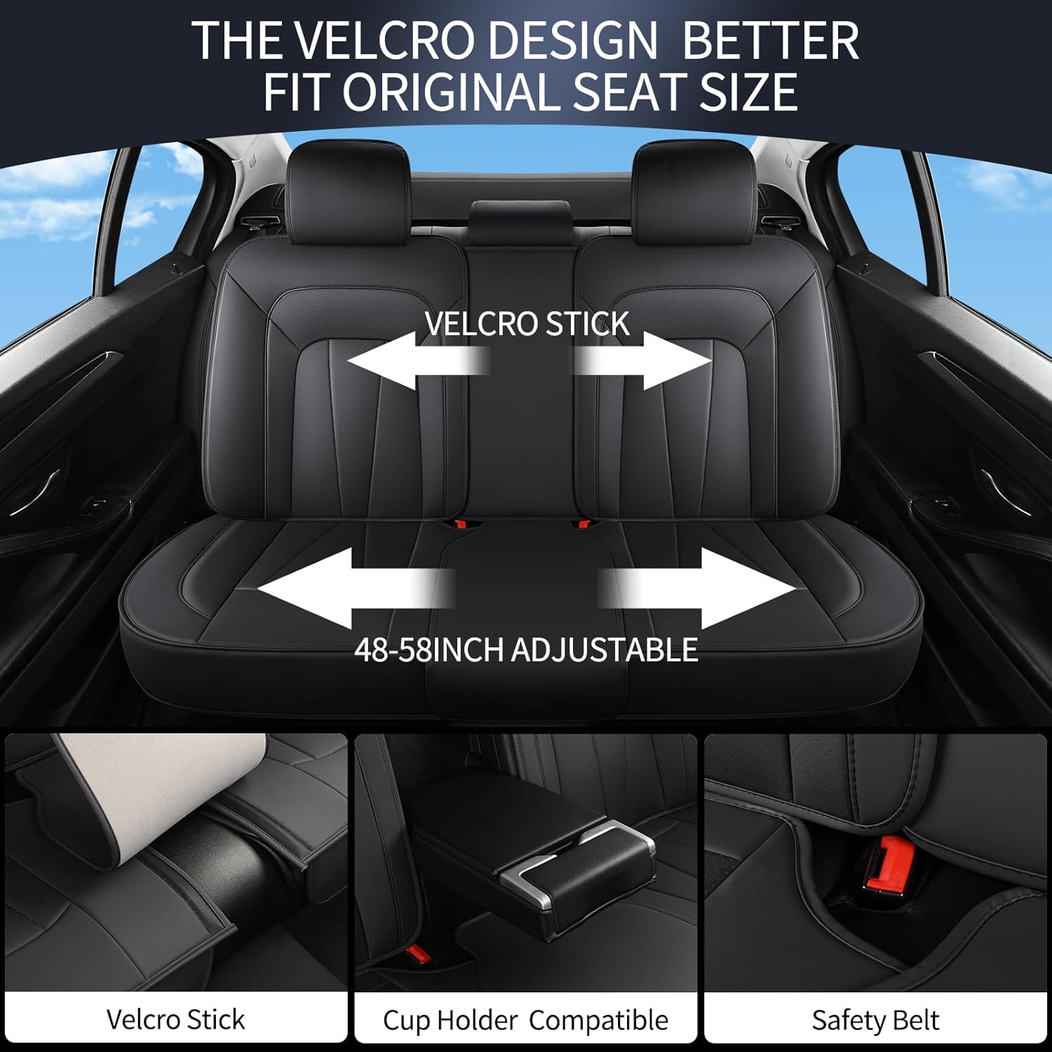 - 【UNIVERSAL FIT and QUICK INSTALLATION】:The leather seat covers are universal fit over 95% of vehicles, tailored to meet most specifications. They cover the seats without hindering the original functions. Please ensure compatibility with your vehicle model before buying.And they are the upgraded version on the market, which can be installed without any tools, and no need to lift or remove the rear seat The retainer ensures a tight fit with the seat so we can quick installation.
