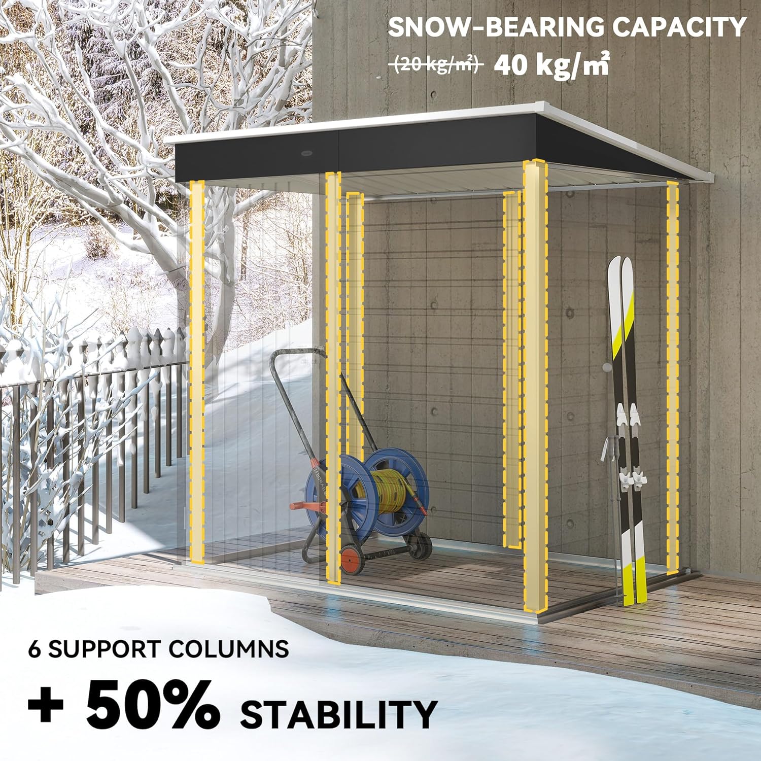 - Enhanced Stability & Strength: Our outdoor shed features 6 support columns (the traditional ones have only two door frame columns). Ensure your outdoor belongings are protected year-round. Foundation kit included.