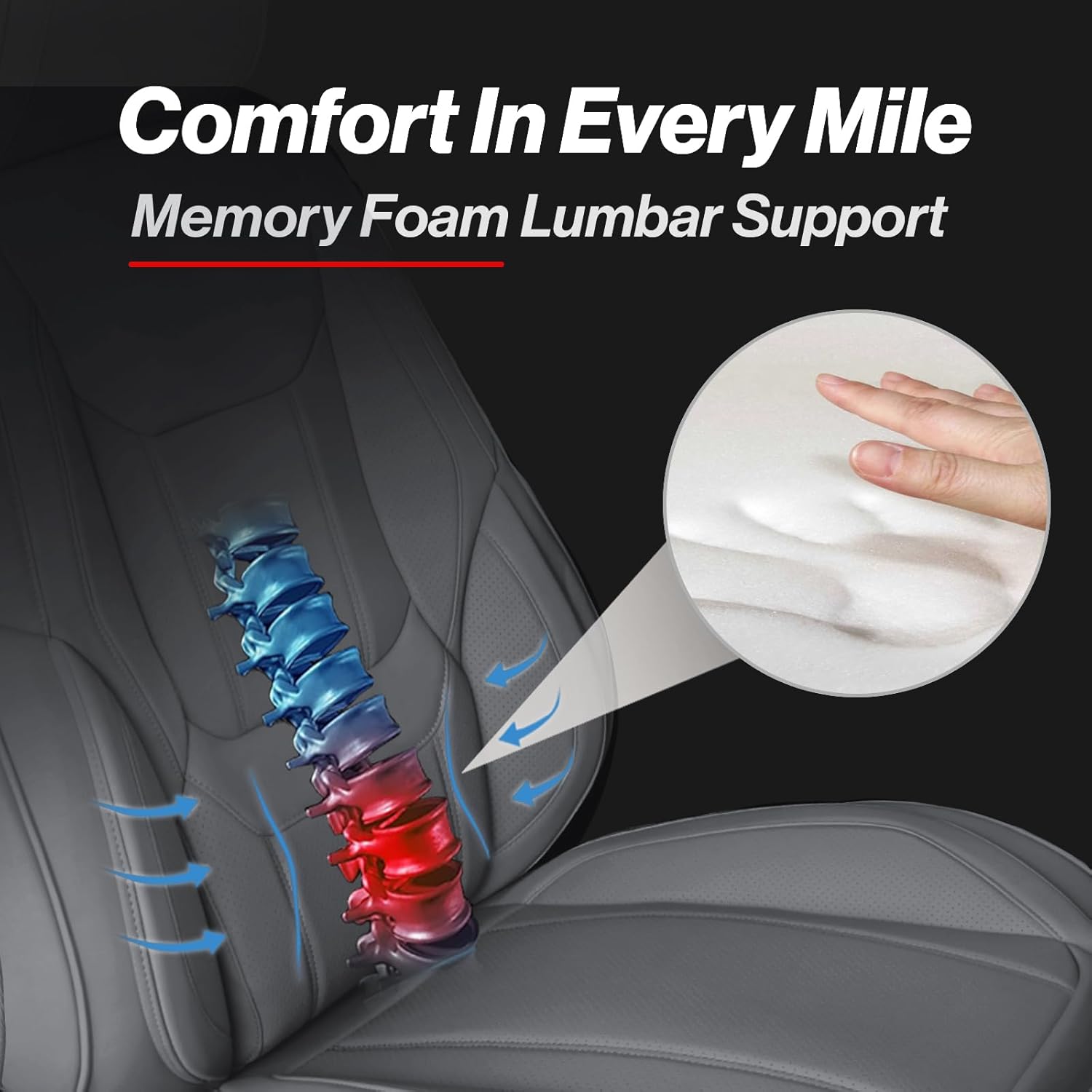 - PREMIUM FAUX LEATHER WITH MEMORY FOAM: Elevate your driving experience with luxurious faux leather car seat covers, designed for both style and comfort. These covers feature built-in memory foam to provide superior lumbar support, ensuring comfort on long drives. With their elegant design and long-lasting durability, they offer a premium feel that enhances your vehicle’s interior.