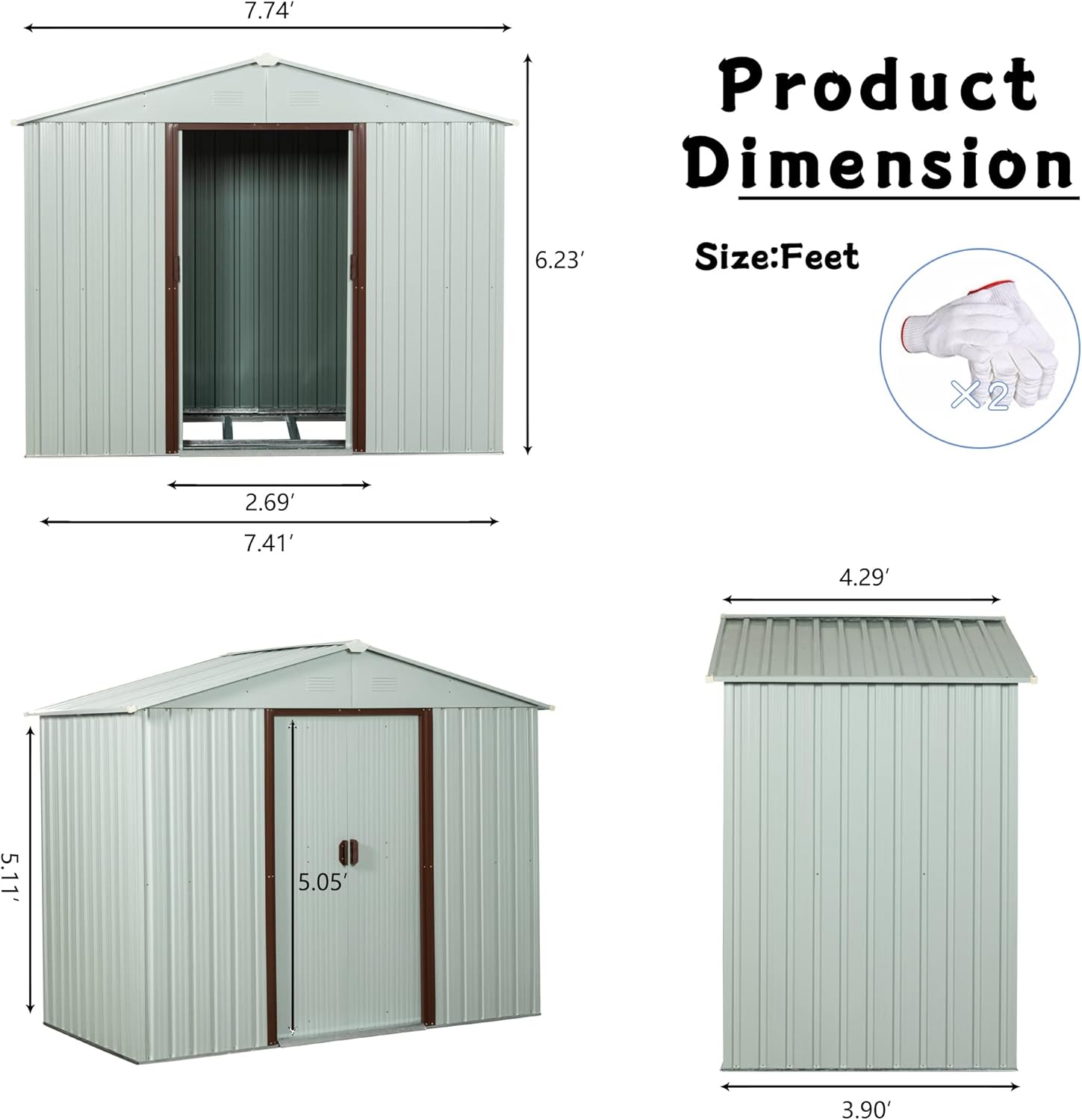 - š”ššš¢š§ššØš«ššš ššš«š®ššš®š«š: There's nothing more frustrating for gardeners than a collapsed garden tool shed. Luckily, this sheds & outdoor storage 8x4 features an upgraded reinforced frame floor, windproof ground stakes and galvanized iron frame for enhanced stability. The thick galvanized steel panels are coated with high-quality paint, making them rust, UV, and moisture-resistant, ensuring durability and the ability to withstand harsh weather for at least 10 years.