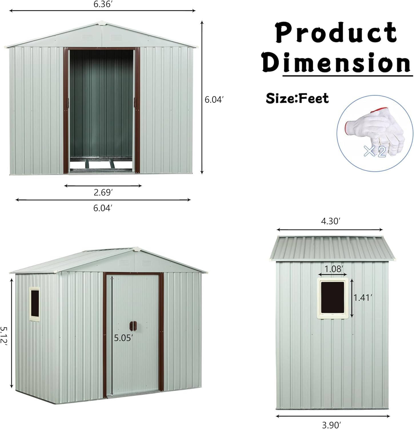 - š”šš„š„-š°šššš”šš« šššØš«šš š šš”šš: Our metal shed 6x5 features smooth sliding doors with handles and a heavy-duty lock for enhanced security. This practical storage building is perfect for storing gardening tools or serving as a warm pet house. The sloped roof effectively prevents leaks and snow buildup, while the transparent side window provides soft natural light. Four integrated punched vents improve airflow, keeping items dry and well-preserved in any weather conditions.