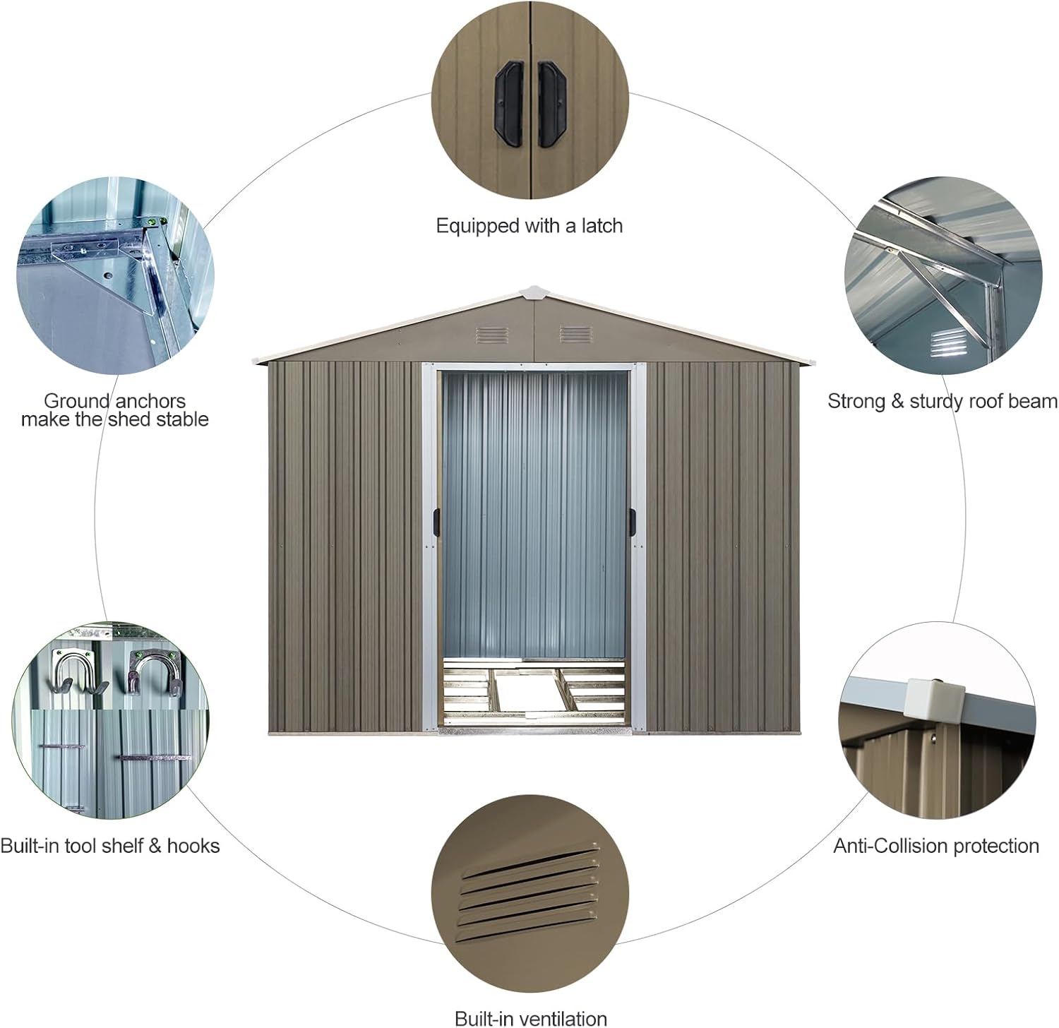 - š”ššš¢š§ššØš«ššš ššš«š®ššš®š«š: There's nothing more frustrating for gardeners than a collapsed garden tool shed. Luckily, this sheds & outdoor storage 8x6 features an upgraded reinforced frame floor, windproof ground stakes and galvanized iron frame for enhanced stability. The thick galvanized steel panels are coated with high-quality paint, making them rust, UV, and moisture-resistant, ensuring durability and the ability to withstand harsh weather for at least 10 years.
