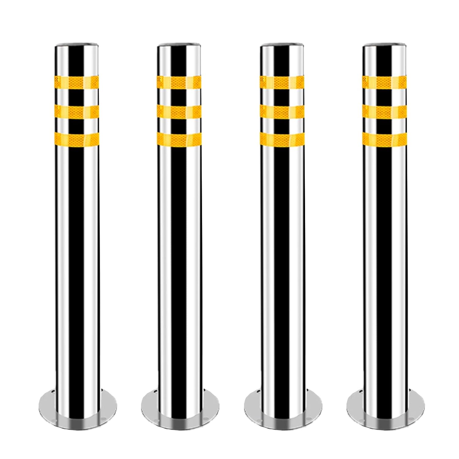 Stainless Steel Parking Bollards for Driveway, Industrial Safety Bollards Reflective Channelizer Post, Parking Barrier, Sturdy and Durable, Easy to Install, for Crowd Control(Silver (4pcs),8.9*75cm/3.