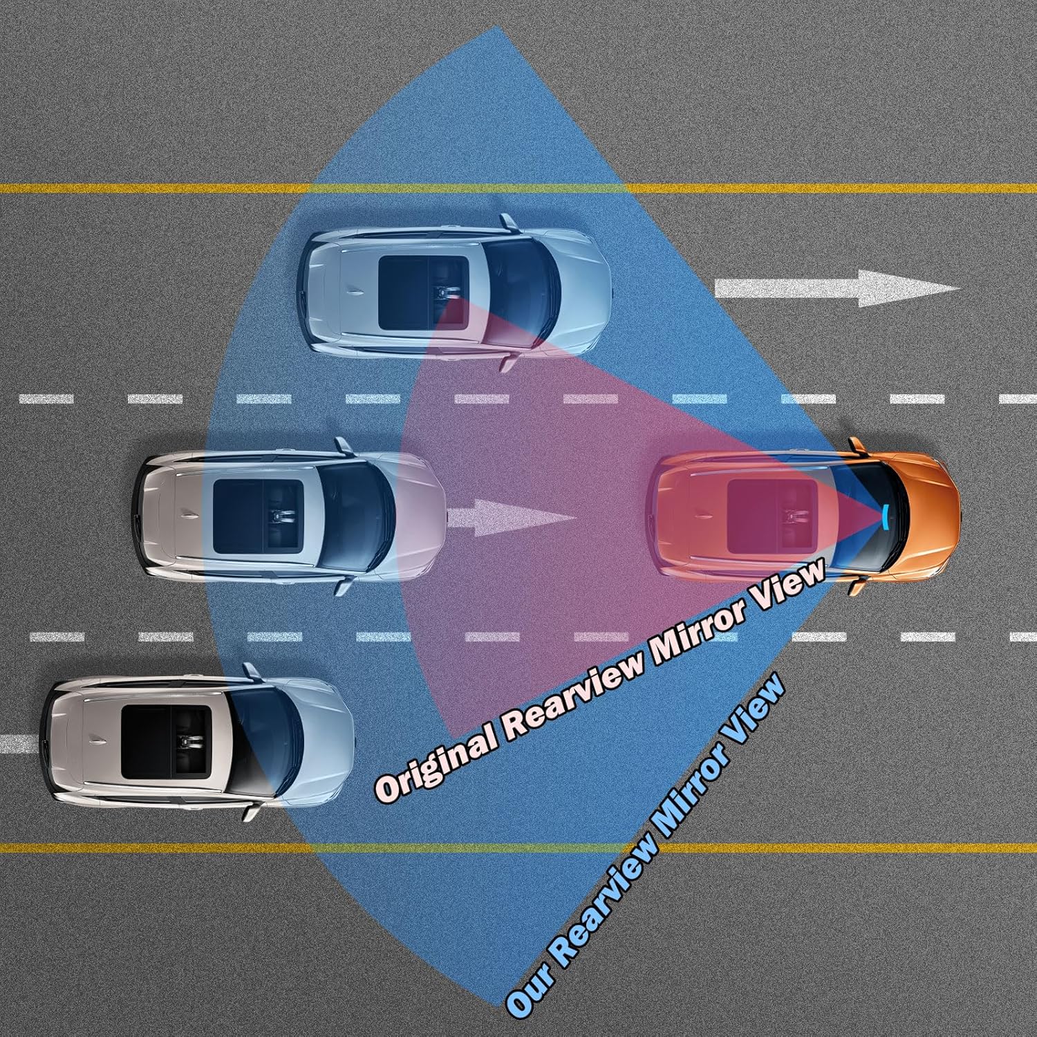 - 【WIDER VIEW】: This convex rearview mirror provides you with a wider-angle view and perfect vision. 1. Blue rear-view mirrors can reduce the glare of the high beams of vehicles coming from behind and improve nighttime driving safety. Note: it is not recommended to use it in a completely dark environment. 2. Eliminating blind spots effectively for safe driving makes your reversing safer. 3. Let you know the condition of the child in the back seat more clearly, so that you can drive more at ease