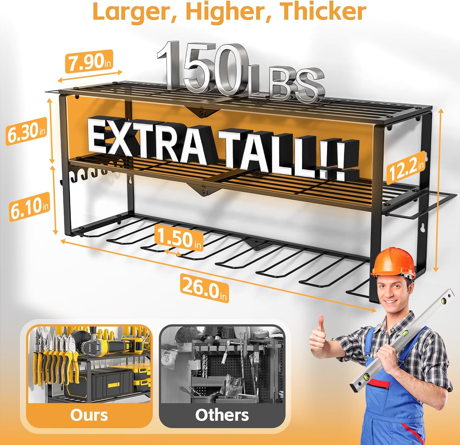 - Rust Resistant Finish: This tool shelf is made from high quality powder-coated steel, preventing rust and corrosion even in wetter environment.