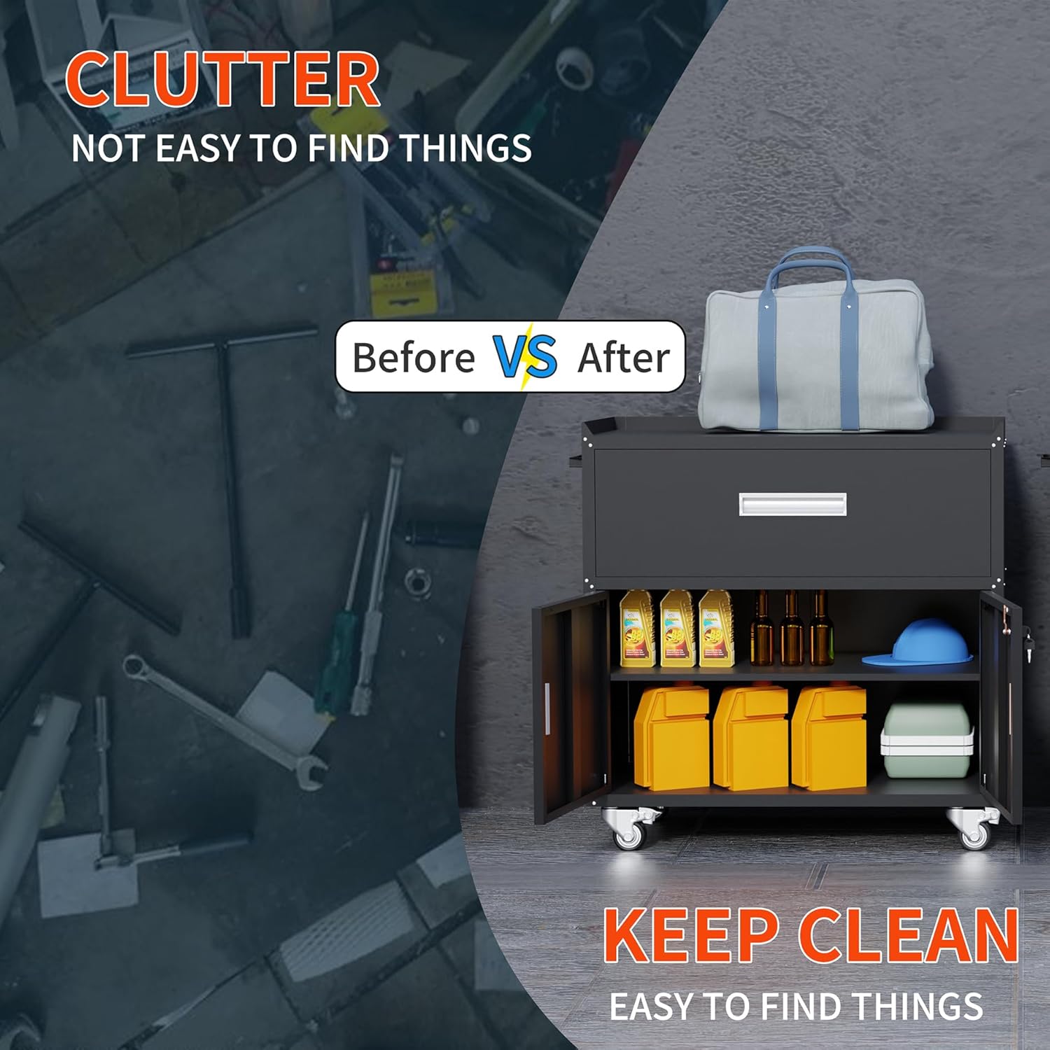 Metal Garage Storage Cabinet with Wheels ,Rolling Toolbox with Lockable Drawer, Utility Cabinet for Home, Office, Garage and Workshop (Black)