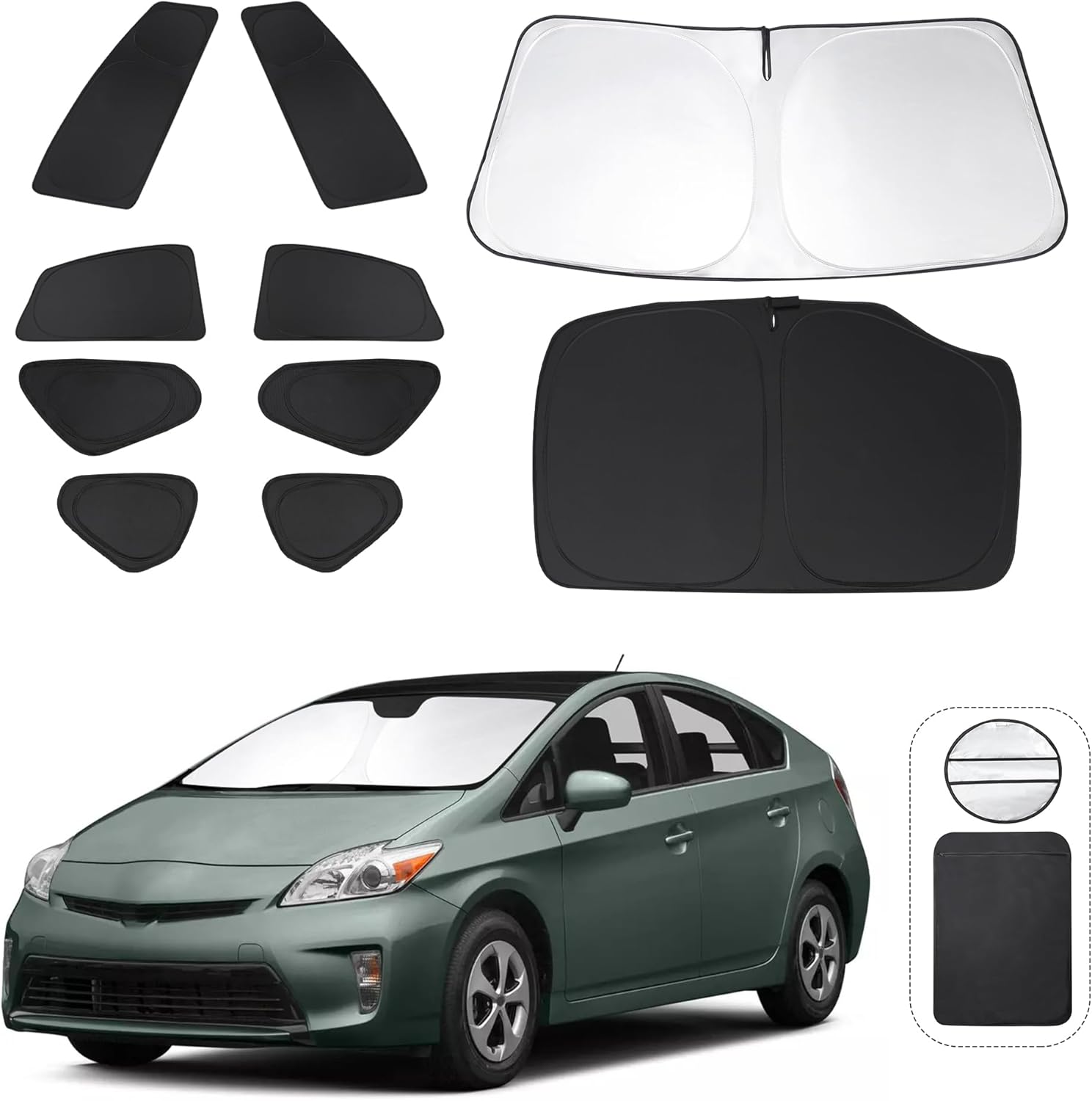 - Customized Design:The sun shade custom fit for Toyota Prius Hatchback 2010-2015 (Not for Prius C or Prius V).Our window shade is according to the car size design,perfectly fit your car and does not need to trim.windshield sun shade solve the problem of light leakage and incompatibility of the old umbrellas.The sunshade designed for Toyota Prius Hatchback(Not for Prius C or Prius V).