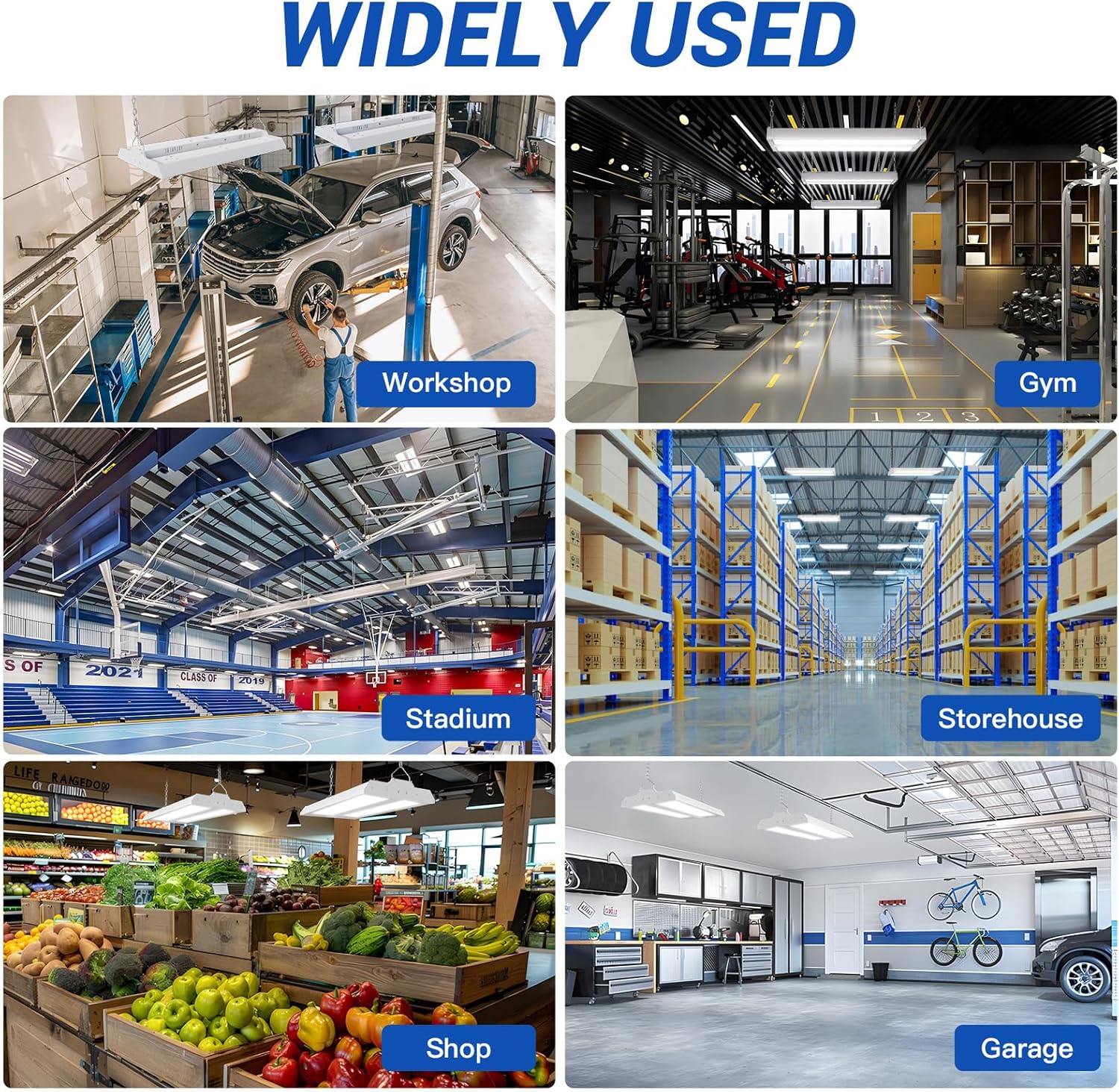 - 【Superb Heat Radiation】The linear highbay workshop light has a great heat dissipation design. Its anti-rust aviation aluminum housing has multiple heat dissipation holes. This design gives it remarkable heat dissipation capabilities, ensuring a 50,000-hour lifespan (8 hours daily use equals 17 years).