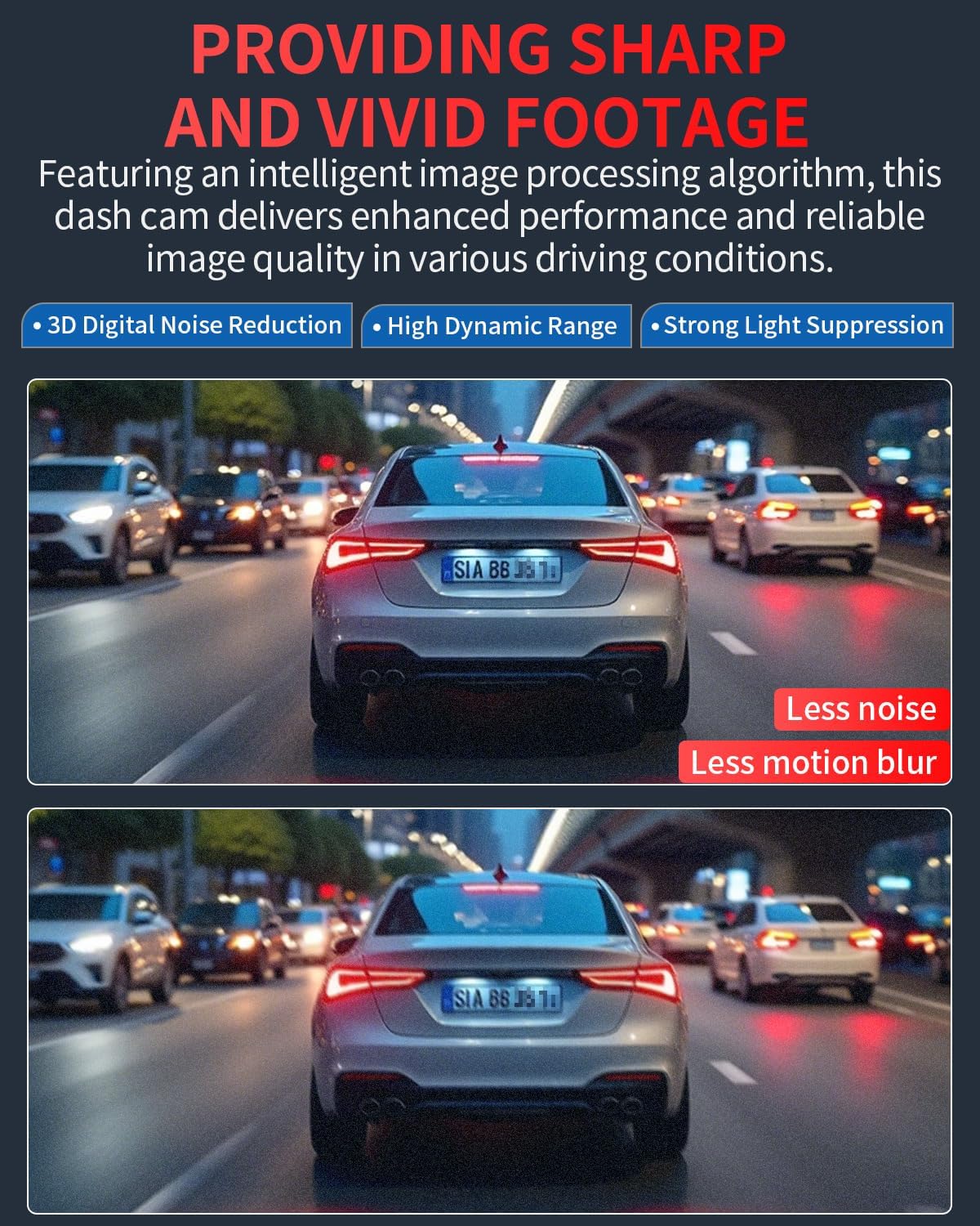 - Superior Night Vision: Equipped with premium optical lenses, a large F1.55 aperture, and six layers of glass, this dash camera for cars integrates HDR, WDR, and 3D DNR technologies, enabling clear recording in low-light conditions and capturing every crucial detail.