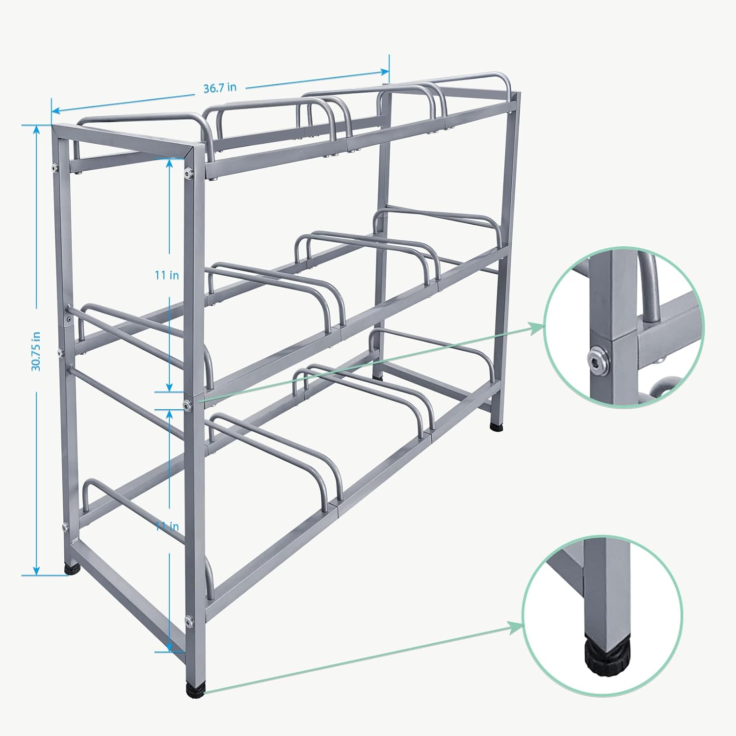 - Space-Saving & Versatile Design: Perfect for small spaces, this 3-tier water jug storage rack fits seamlessly in homes, offices, garages, and more. It can store a week’s supply of water for 10-12 people and accommodates both 3-gallon and 5-gallon jugs without wobbling, maximizing space efficiency.