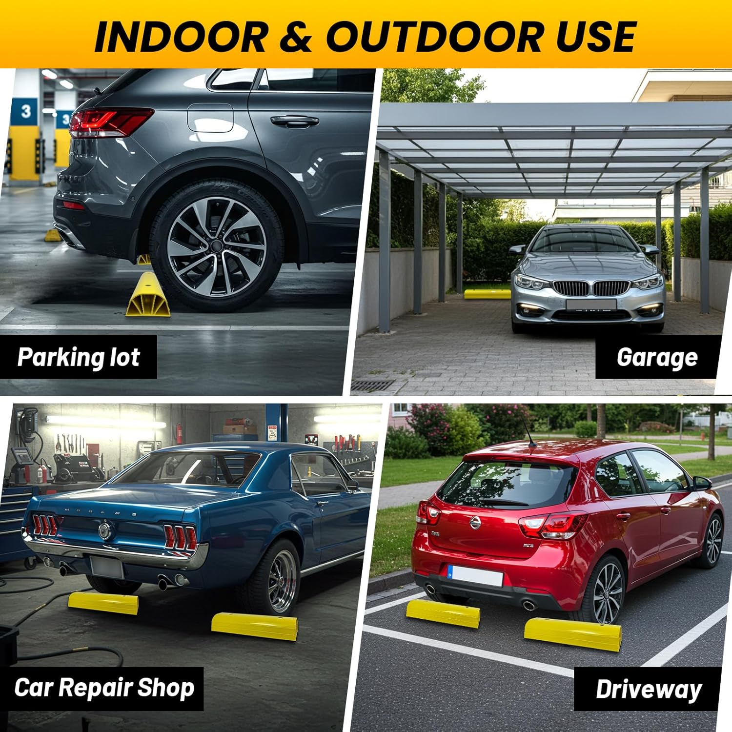 - High Visibility: The striking yellow color creates a sharp contrast with the surroundings, making the parking block highly noticeable and easy for you to locate and park. Even in a dimly lit basement, you won't have to worry about tripping