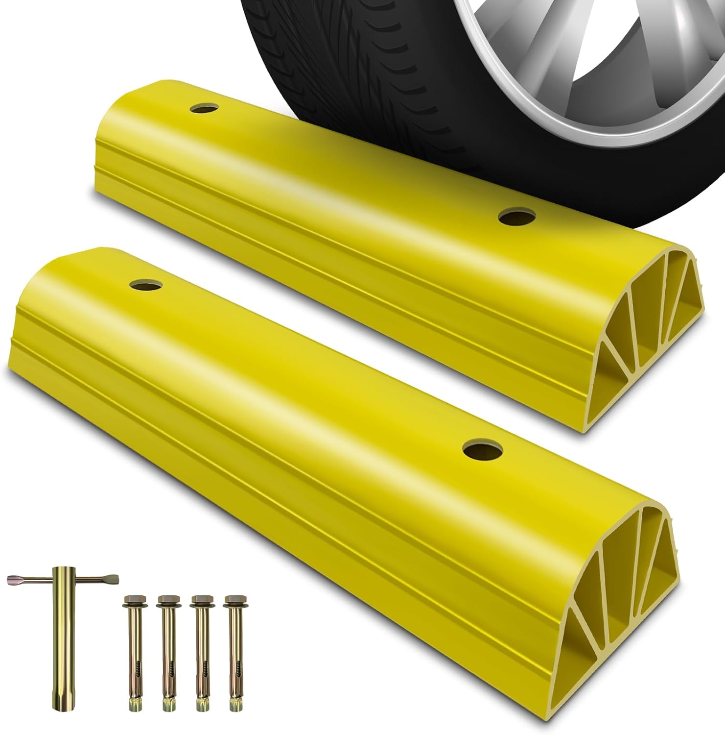 ROBLOCK 22" Parking Stopper for Home Garage & Outside, Heavy Duty Garage Stoppers for Protecting Your Vehicle, Parking Aids for New Drivers, Wheel Stops for Cars, Vans, Trailer, 2 Packs, Yellow