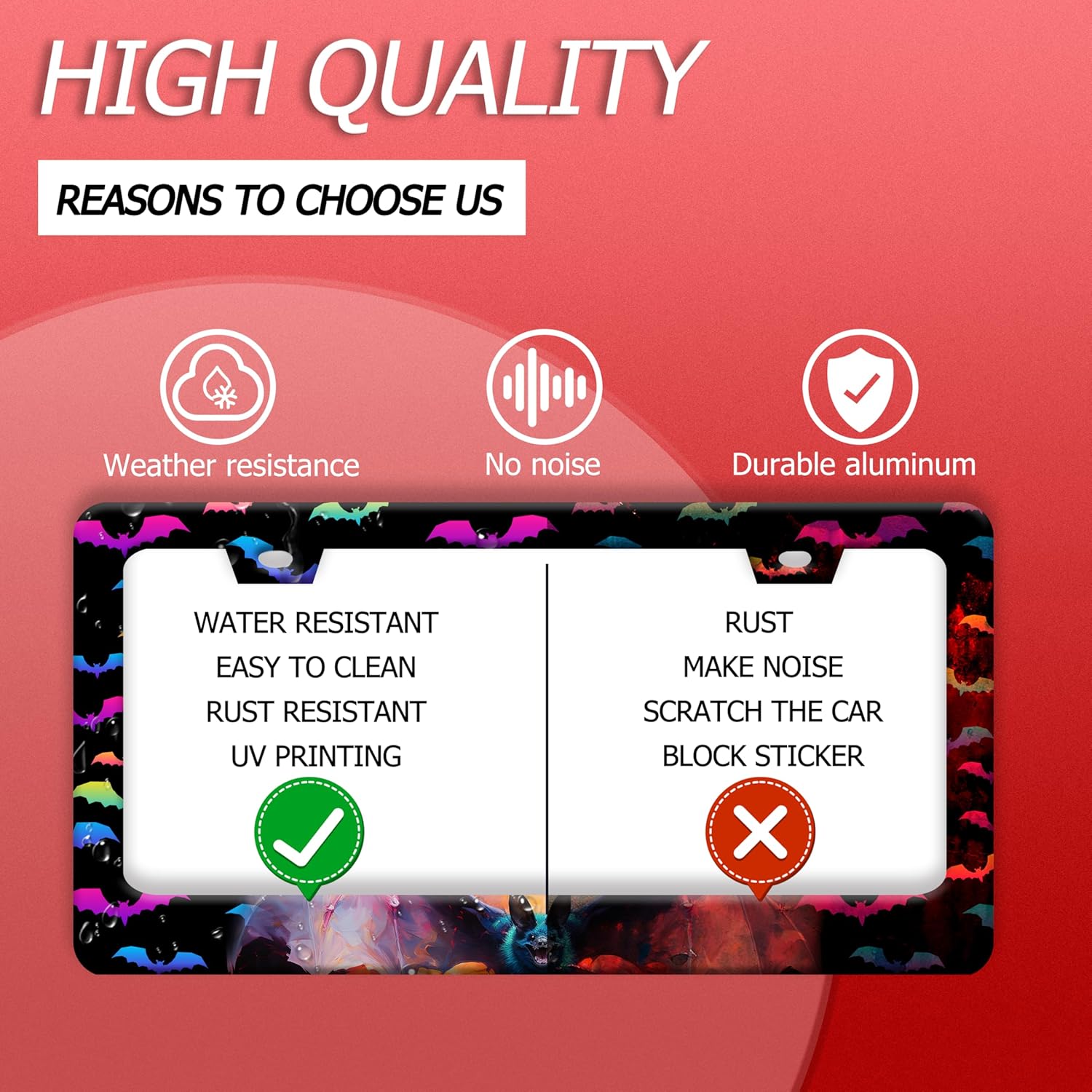 Bat License Plate Frame Funny Gothic License Plate Frames Stainless Steel Accessories Cars Decor with 2 Holes and Screws Reusable Fits Standard Us Ca Vehicles License Plate Holder 12.2 X 6 Inch