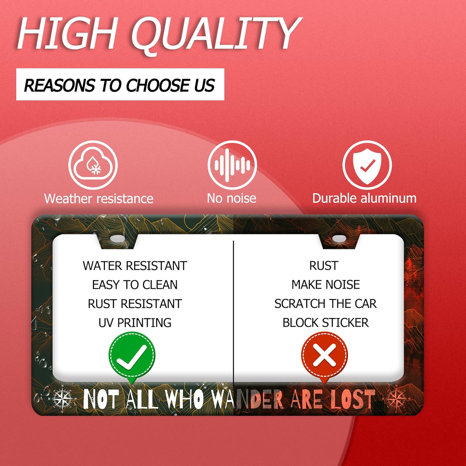 Not All Who Wander are Lost License Plate Frame Funny Golden Mountains License Plate Frames Stainless Steel Accessories Cars Decor with 2 Holes and Screws Fits Standard Us Ca Vehicles 12.2 X 6 Inch