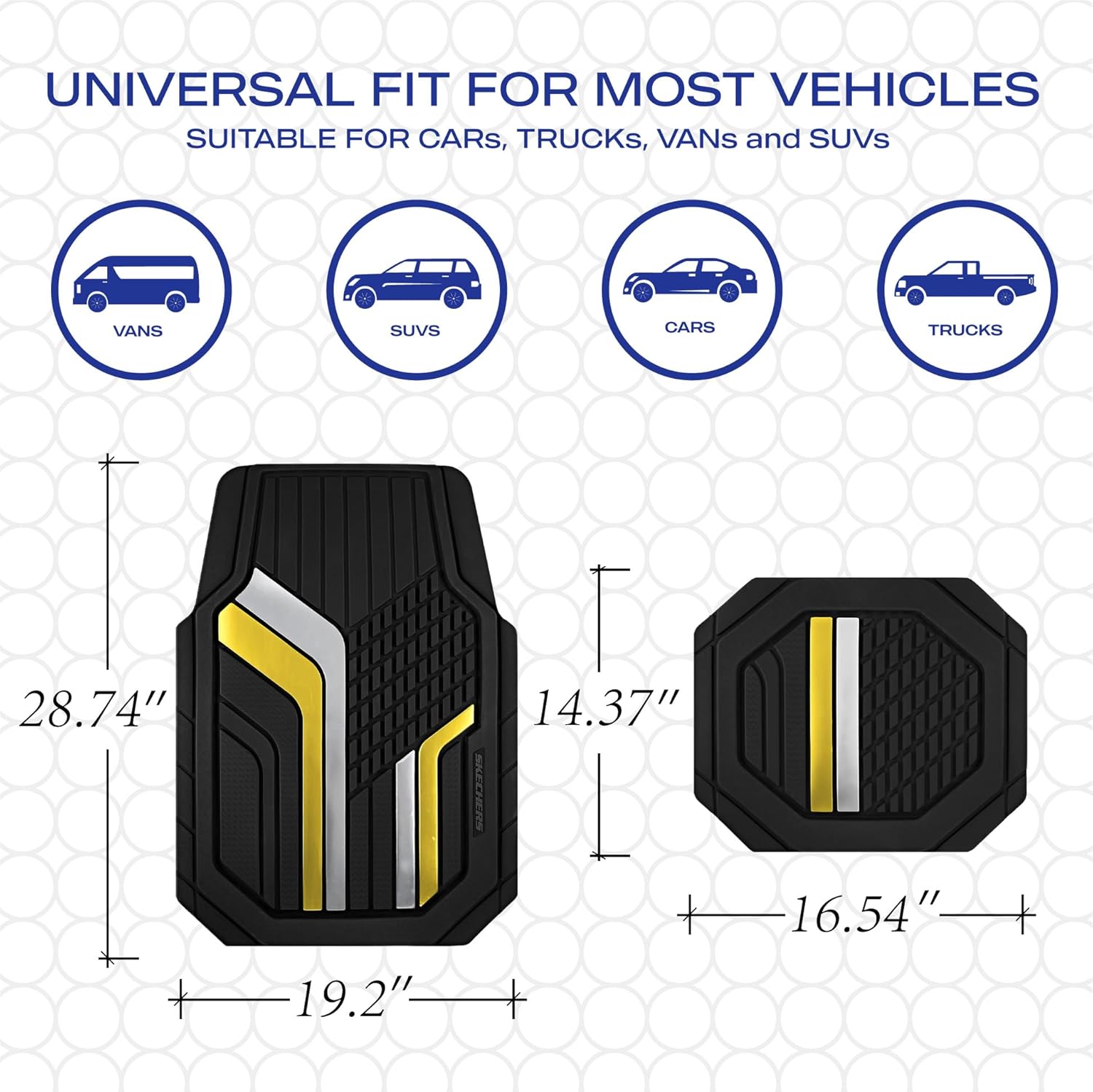 Skechers Heavy Duty Rubber Car Floor Mats,Dual Color Design Floor Mats,All Weather Car Mats,Waterproof Trim to Fit Universal Floor Liner Car Mats,Automotive Floor Mats for Cars Trucks Suvs,Yellow
