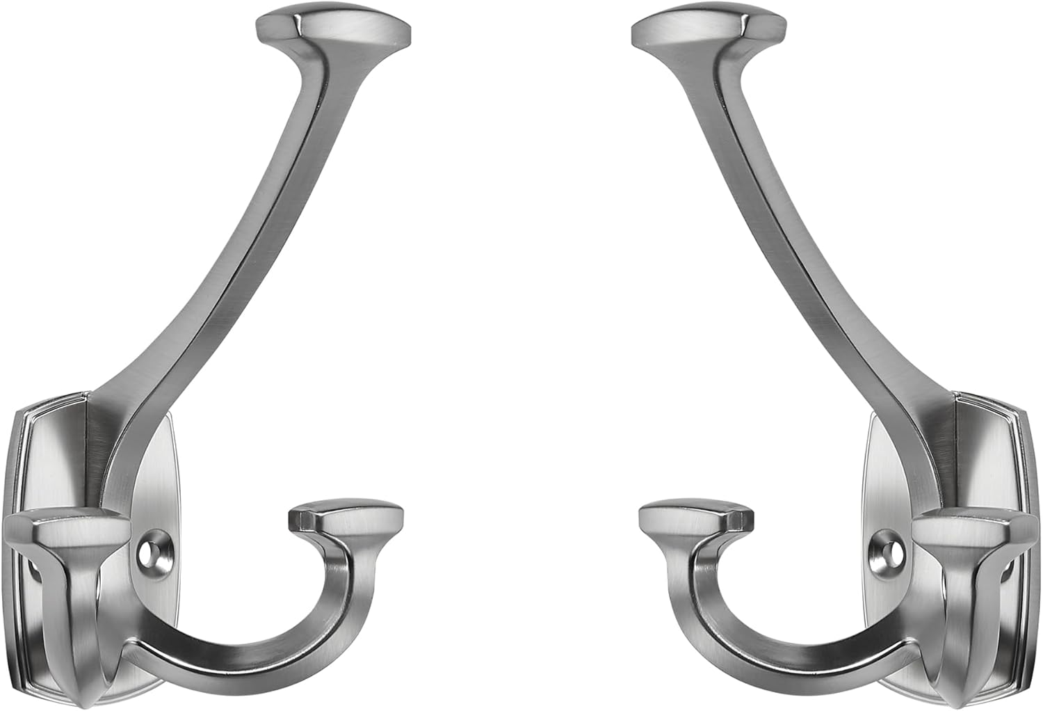 Large Wall Double-Sided Hook 2 Pack Brushed Satin Nickel Hook Decorative Heavy Duty Solid Large Coat Hooks for Towel Hanging Coats Robe Towel Bags Door Back 2 Prong Hooks