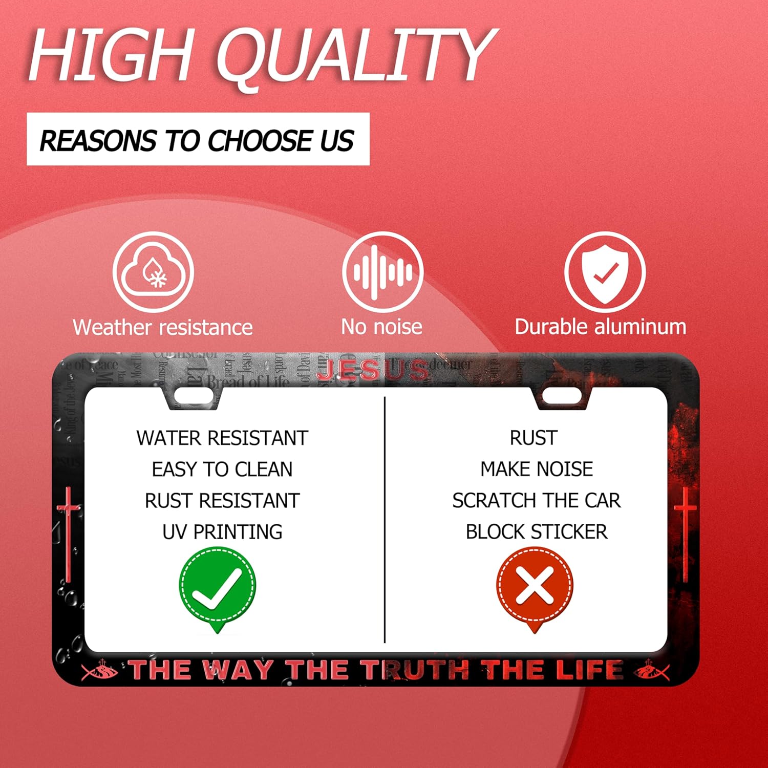 Jesus The Way The Truth The Life License Plate Frame Christian License Plate Frames Funny Stainless Steel Accessories Cars Decor with 2 Holes and Screws Fits Standard Us Ca Vehicles 12.2 X 6 Inch