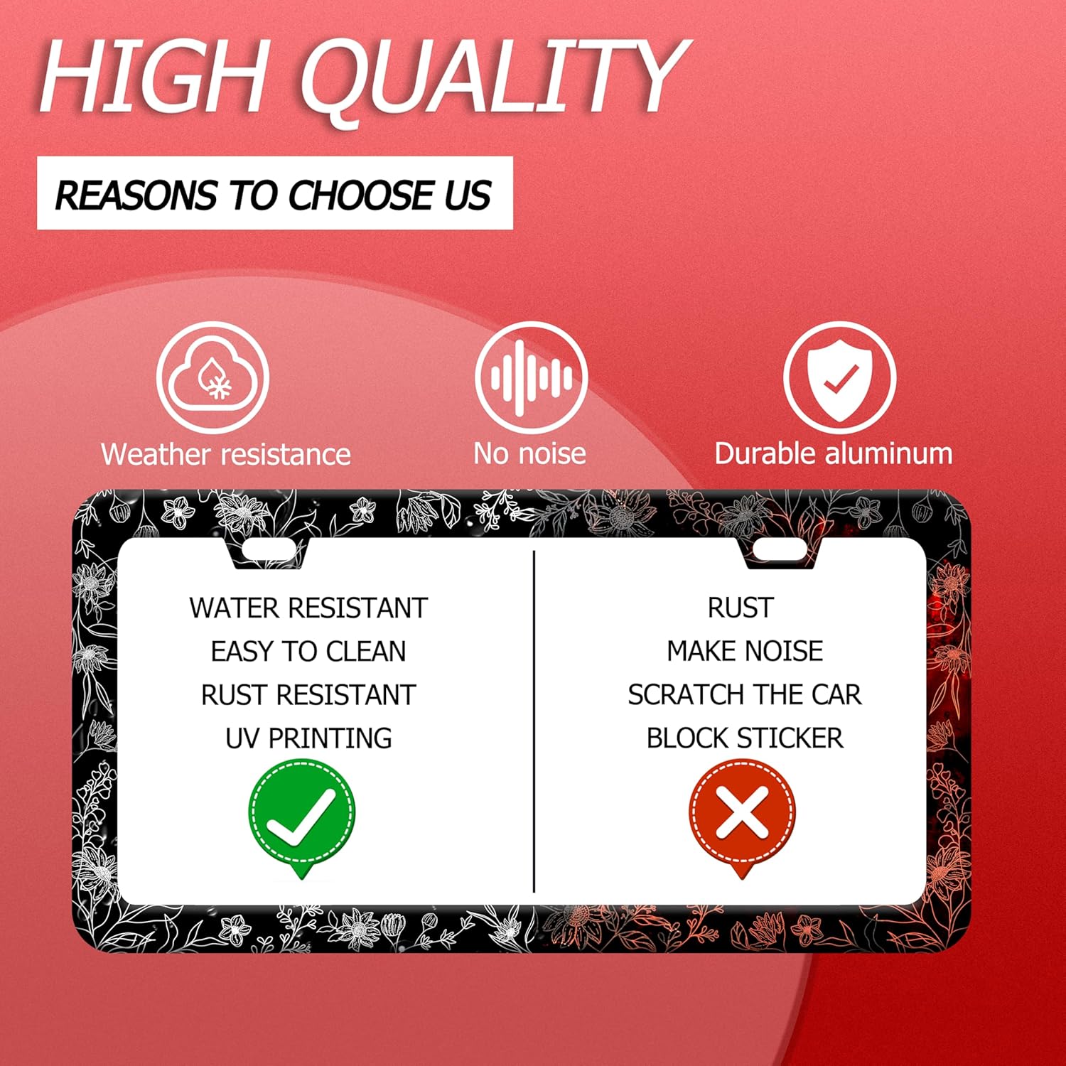 Line Art Flowers License Plate Frame Beautiful Floral License Plate Frames Funny Stainless Steel Accessories Cars Decor with 2 Holes and Screws Fits Standard Us Ca Vehicles Holder 12.2 X 6 Inch
